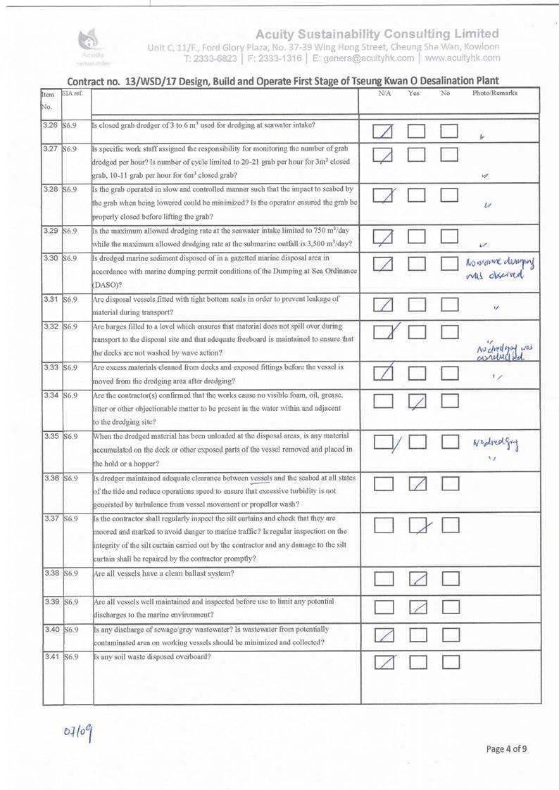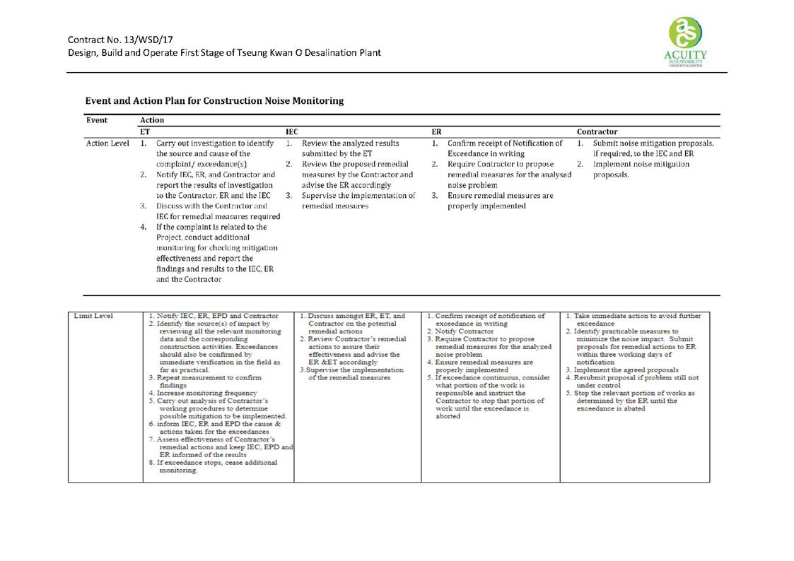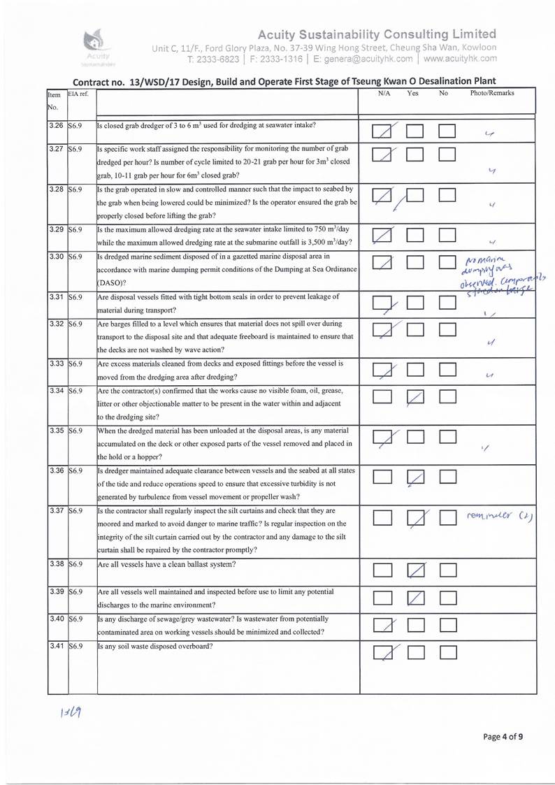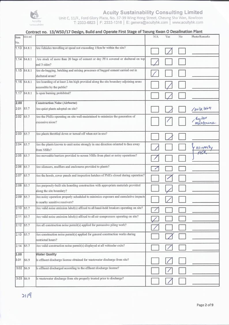 - Construction dust and noise generation from construction and ELS works, pipe piling driven works and marine dredging and construction works
