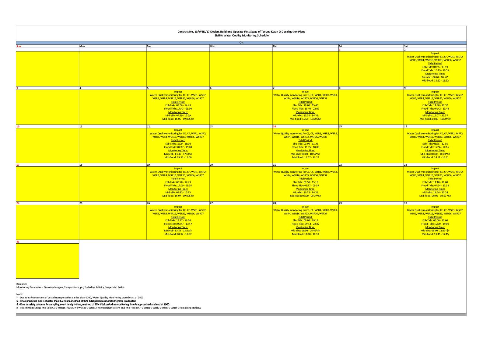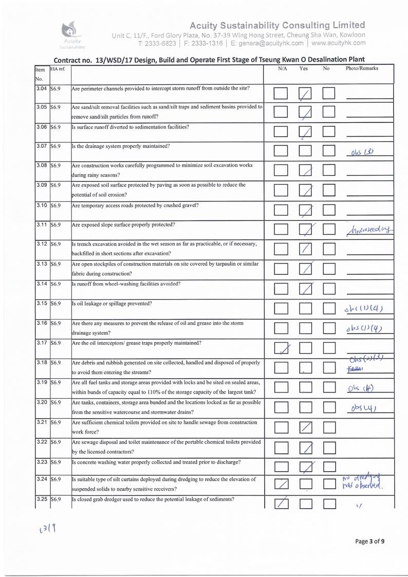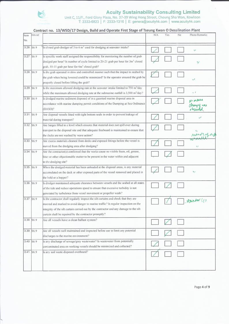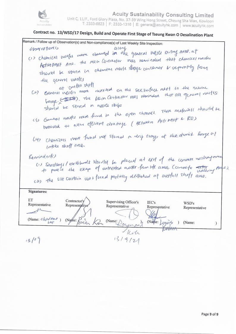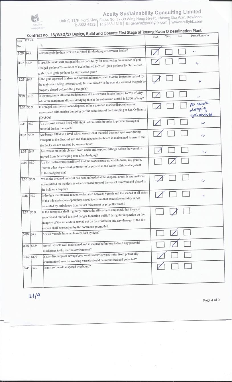 A9. The EM&A works for water quality were conducted during the reporting period in accordance with the EM&A Manual.