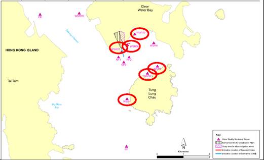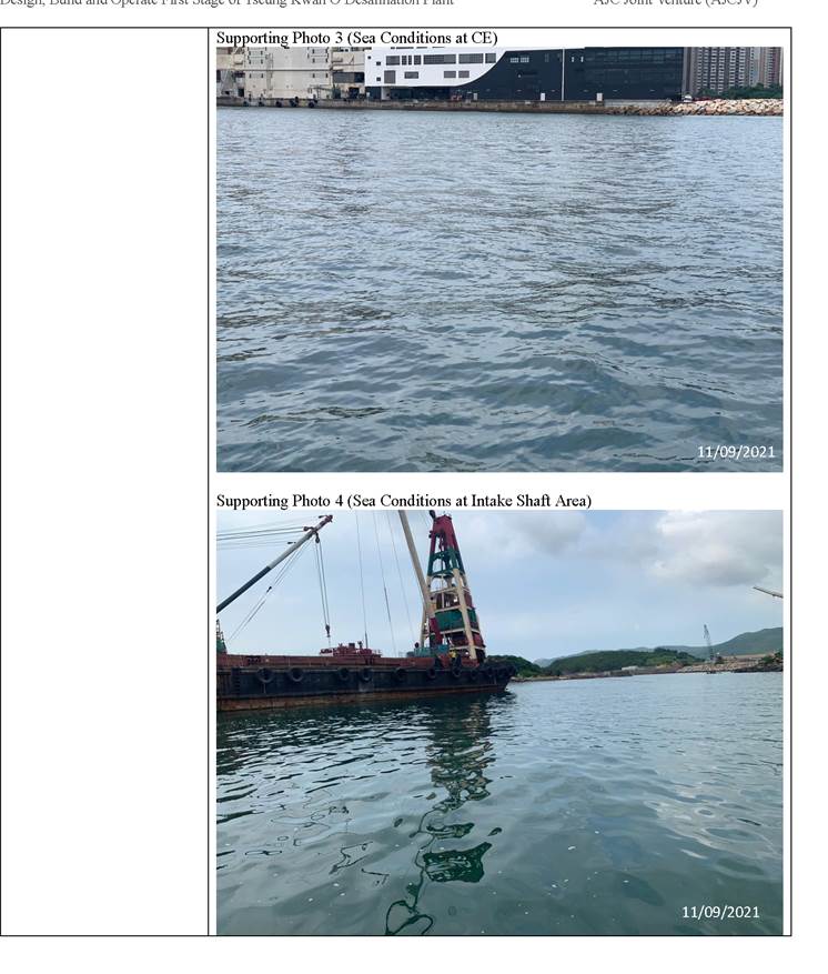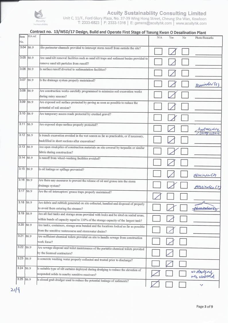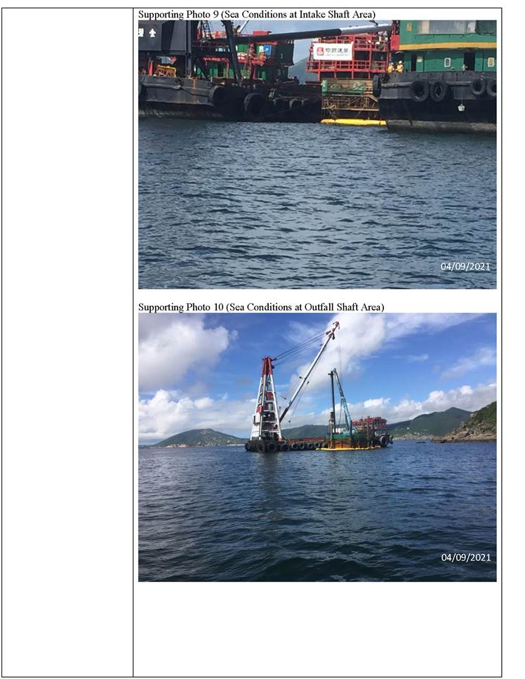 - Deployment of temporary silt curtain in the area where marine construction works were conducted and deployment of water sedimentation tanks for treatment of wastewater at inland areas before discharge