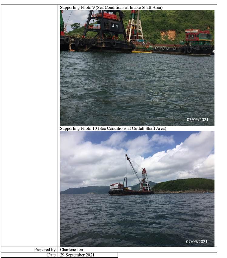 Area: marine construction activities, namely 1) One derrick barge for material lifting (0800 - 1800 hrs); 2) One derrick barge supporting sheet piling work (0800