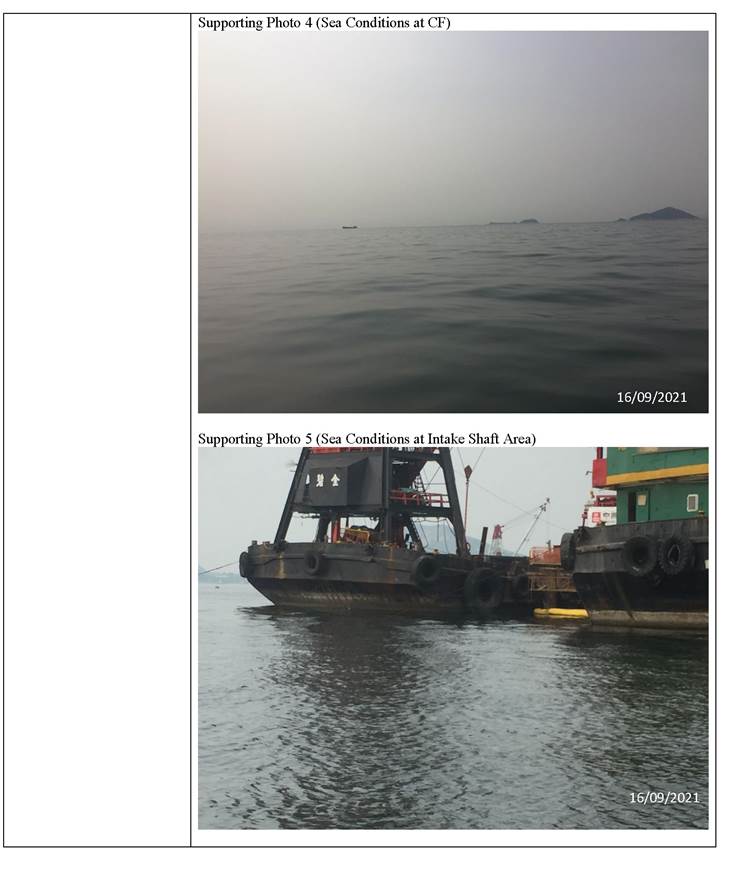 installation of socket H beam inside sunken pipe piles (0800 - 1800 hrs). Marine vessels on 25 September 2021: -