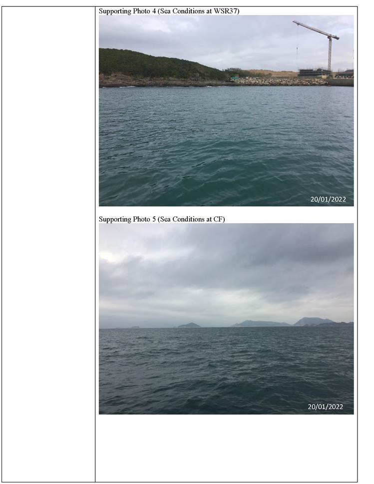 was observed on sea surface near to the Outfall Shaft Area. Further interview