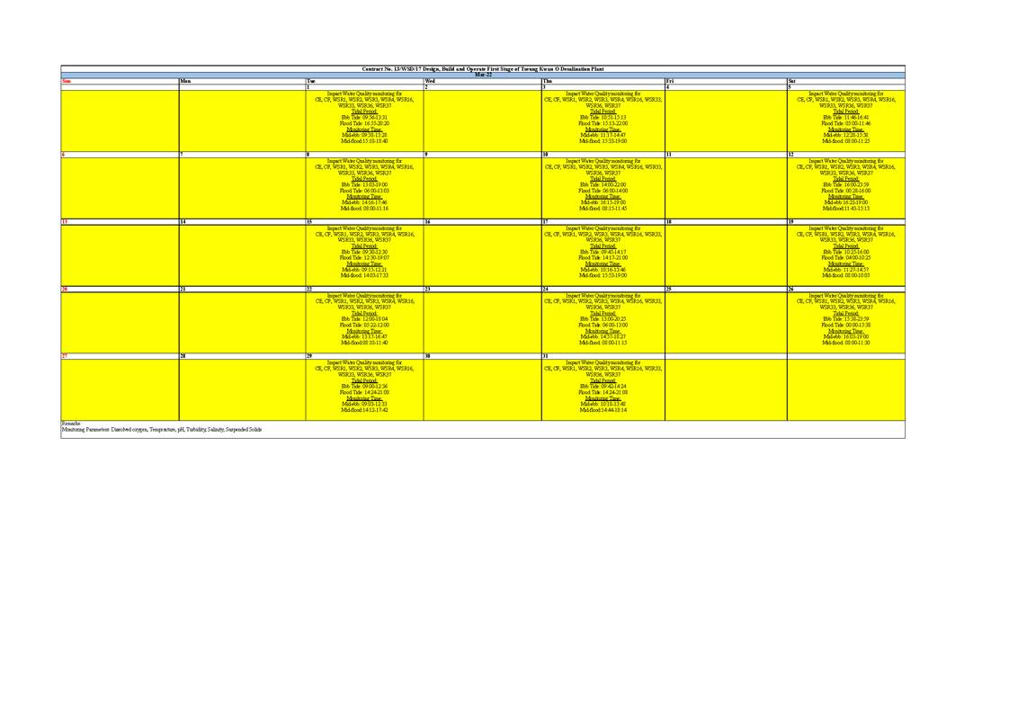 exceedance was however observed at WSR1 (5.2 mg/L). According to the construction work schedule provided by Contractor, no marine construction activities were conducted at both Intake |