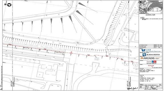 Combined Shaft - Staircases and internal finishing, puddle pipe installation, stop log wall construction - Installation of mechanical equipment and piping, stoplogs and band screens Pump room - Staircases and internal finishing, overhead crane installation Elevated Walkway - Lift shaft construction Slope works - Excavation at slope toe and access erection, Soil anchor and grouting construction Open Channel - Wall construction Other - 132 kV temporary emergency vehicular access (eva) Construction - Permanent road construction at Zone A, B, C |