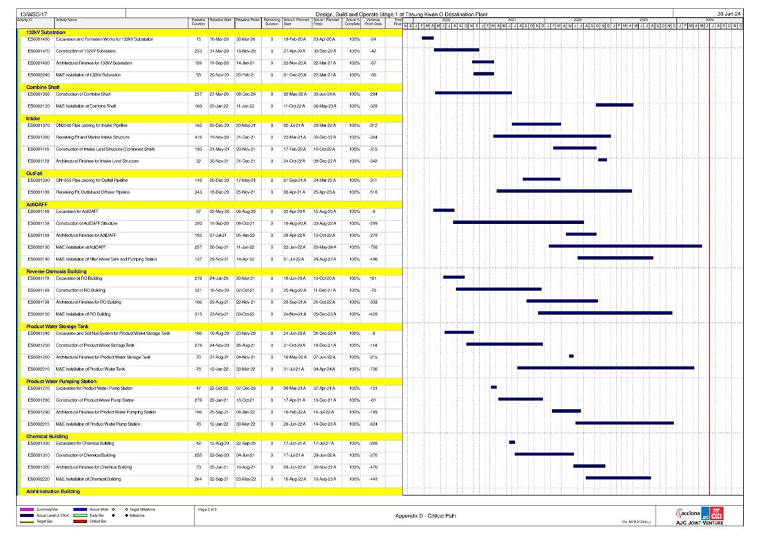 on 1 September 2023. The commissioning activities were shown in the table below. The desalination plant and the outfall