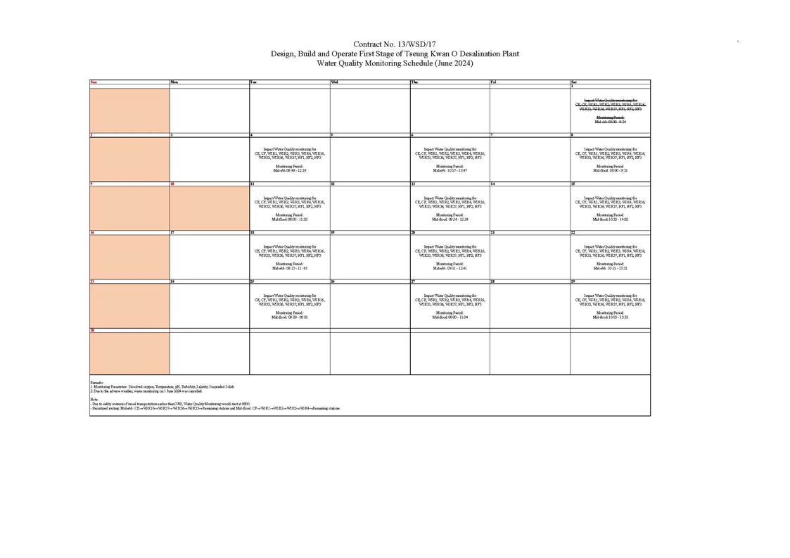 water quality monitoring on 20 June 2024, 27 June 2024,