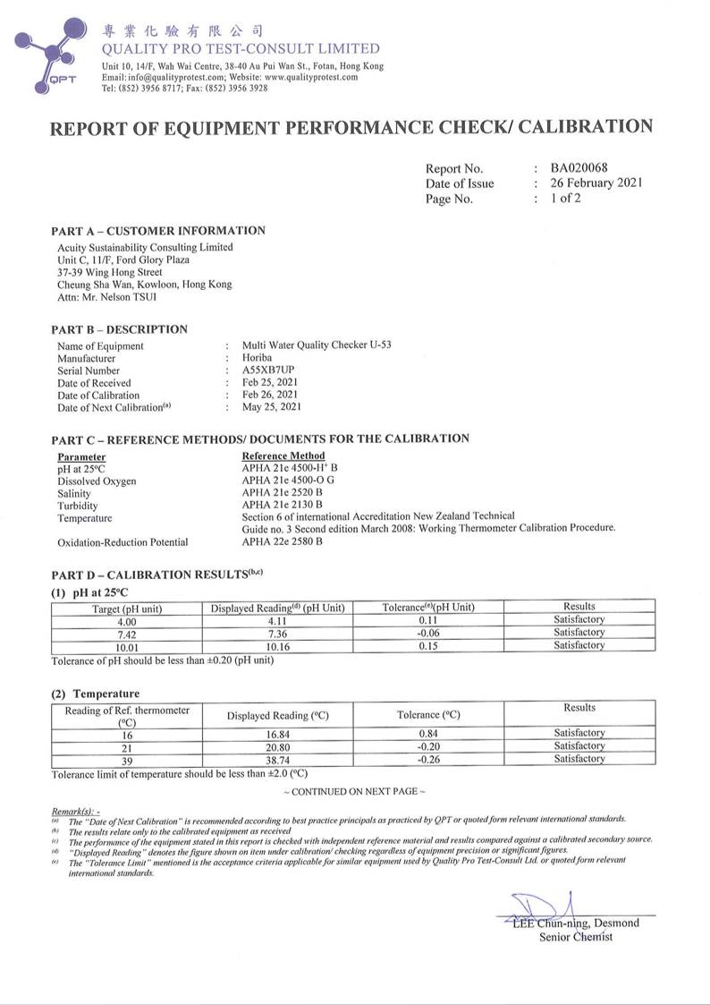 checked, calibrated and certified by laboratory accredited under HOKLAS or any