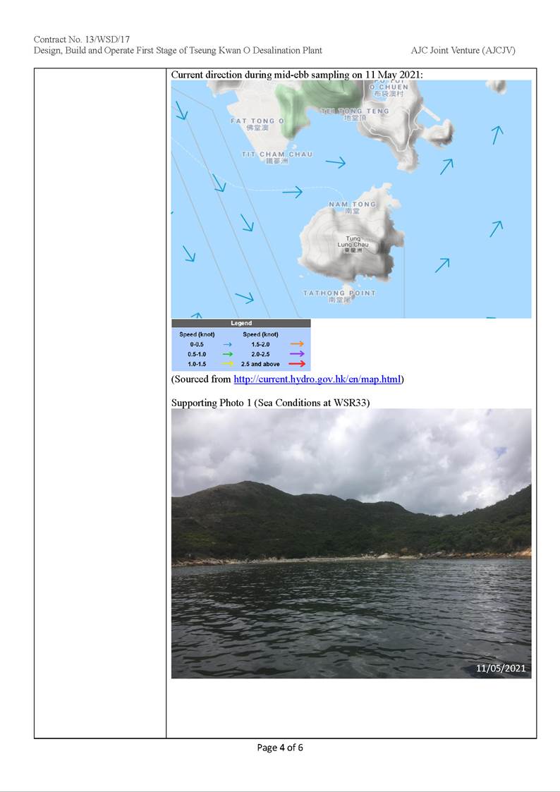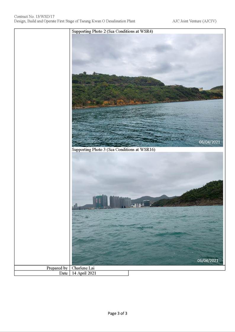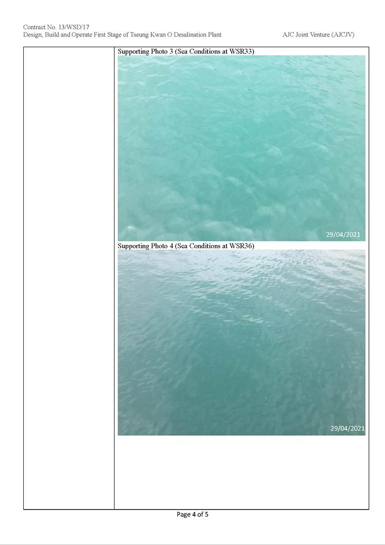 A10. General water quality monitoring at the ten monitoring stations (CE, CF, WSR1, WSR2, WSR3, WSR4, WSR16, WSR33, WSR36 and WSR37) were conducted on 1, 3, 5, 8, 10, 12, 15, 17, 19, 23, 25, 27 and 30 March 2021; 1, 3, 6, 8, 10, 13, 15, 17, 20, 22, 24, 27 and 29 April 2021 and 1, 4, 6, 8, 11, 13, 15, 18, 20, 22, 25, 27 and 29 May 2021.