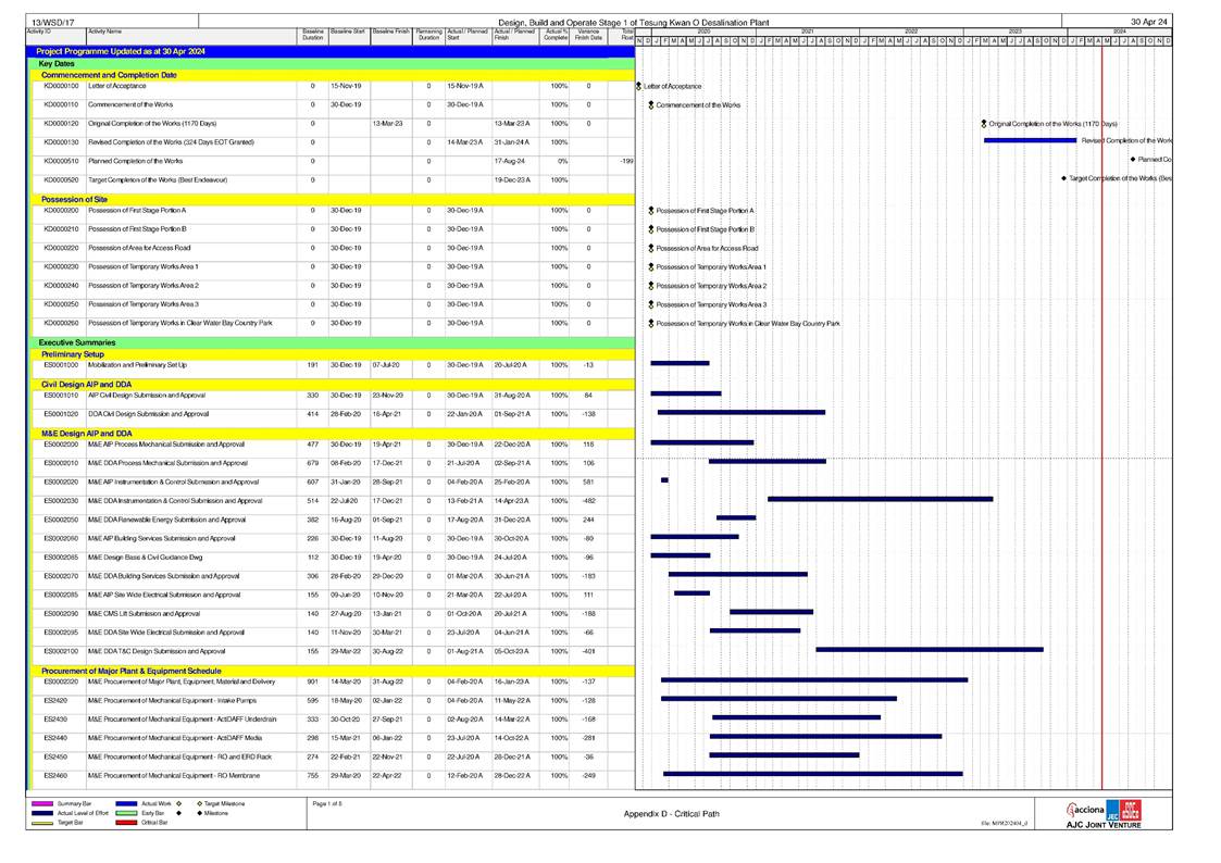 A1. The Project, Design, Build and Operate First Stage of Tseung Kwan O Desalination Plant (TKODP), is a Designated Project under the Environmental Impact Assessment Ordinance (Cap. 499) (EIAO) and is currently governed by a Further Environmental Permit (EP No. FEP - 01/503/2015/B) for the construction and operation of the Contract.