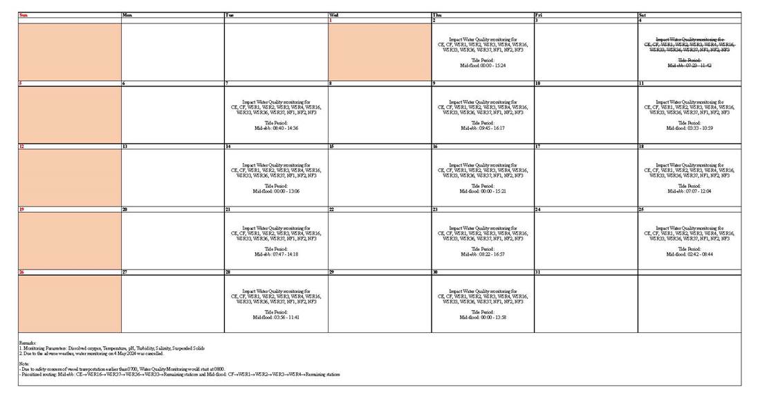 A9. The construction phase marine water quality programme was ceased from 1 September 2023 due to the completion of marine-related construction works.