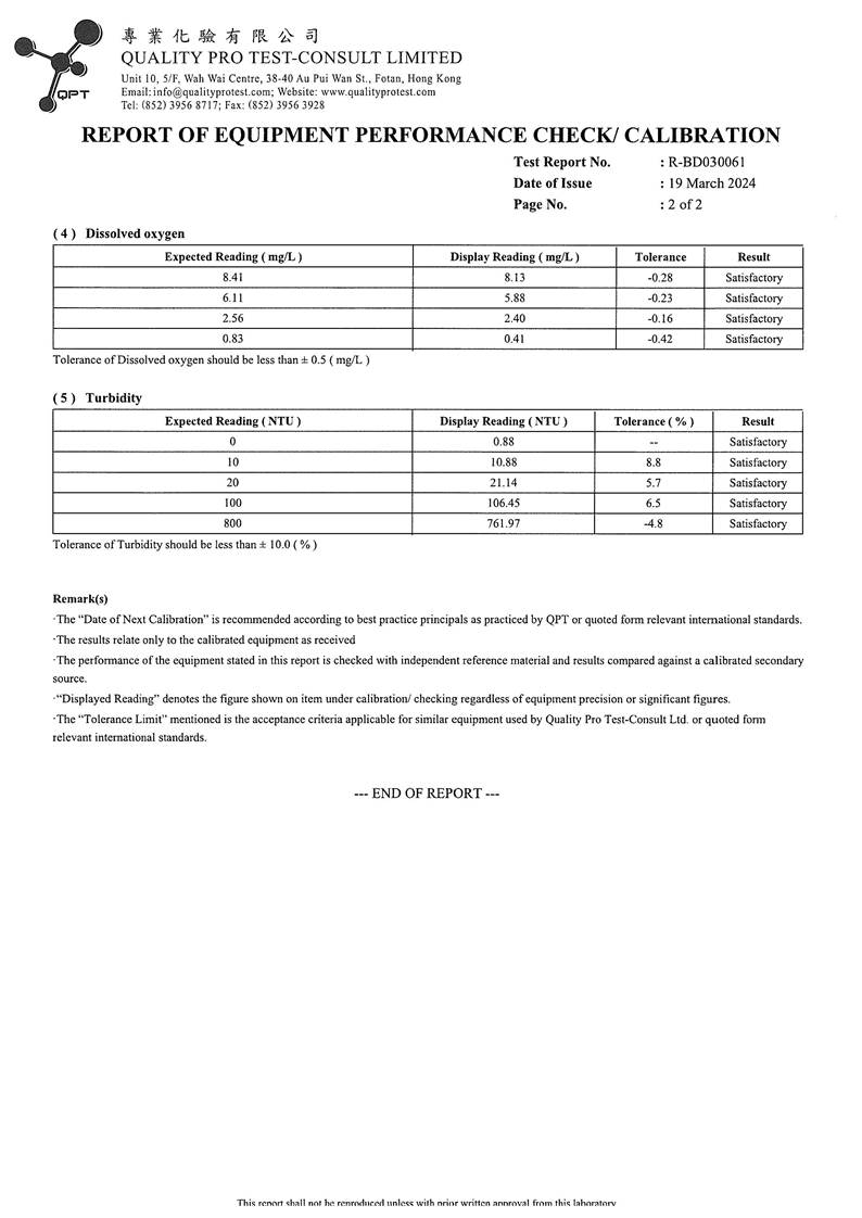 Appendix F Water Quality Monitoring Equipment and Landfill Gas Equipment Calibration Certificate