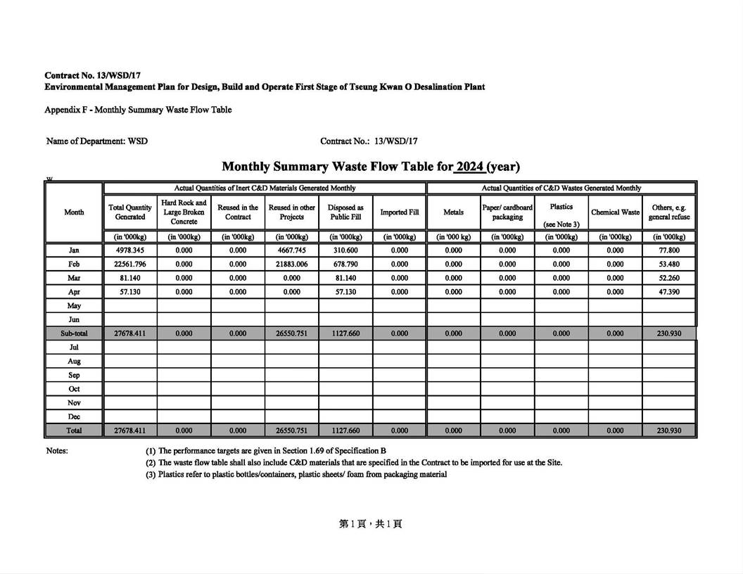 A3. This is the 50th Monthly EM&A Report, prepared by ASCL, for the Contract summarizing the monitoring results and audit findings of the EM&A programme at and around Tseung Kwan O Area 137 (TKO 137) during the reporting period from 1 April to 30 April 2024.