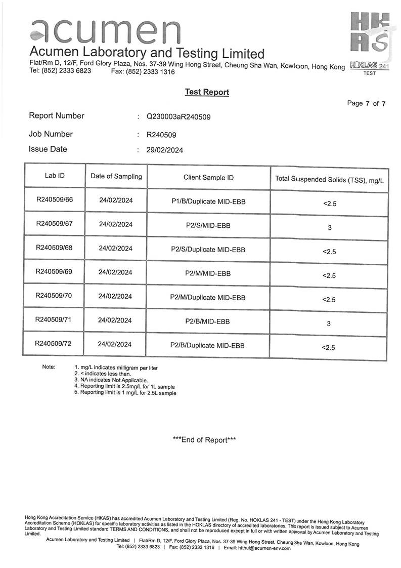 A10. The EM&A works for Pre-operation phase marine water quality were conducted during the reporting period in accordance with the EM&A Manual. Thirty-eight (38) of the pre- operation phase water quality monitoring results of SS obtained had exceeded the Action Level. Twenty-two (22) of the pre-operation phase water quality monitoring results of SS obtained during the reporting period had exceeded the Limit Level.
