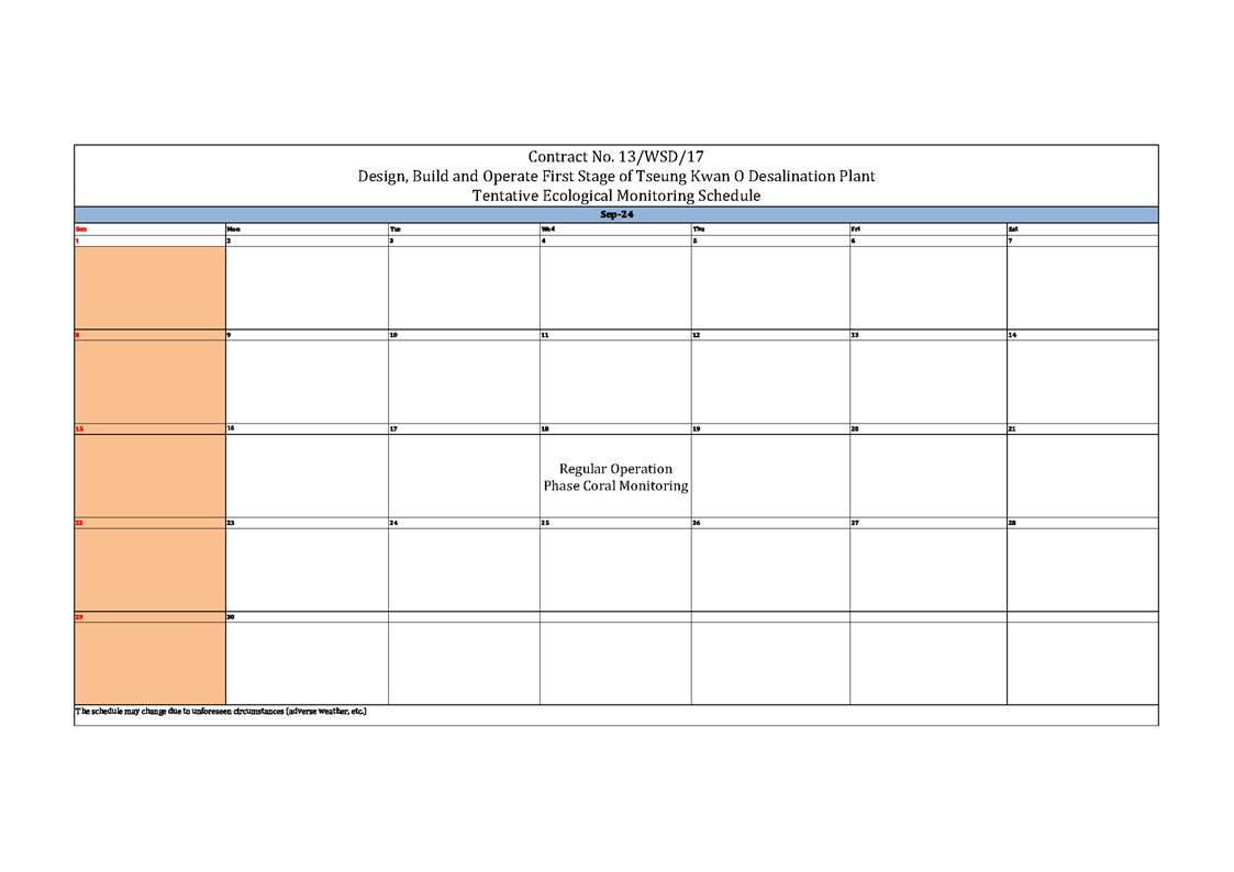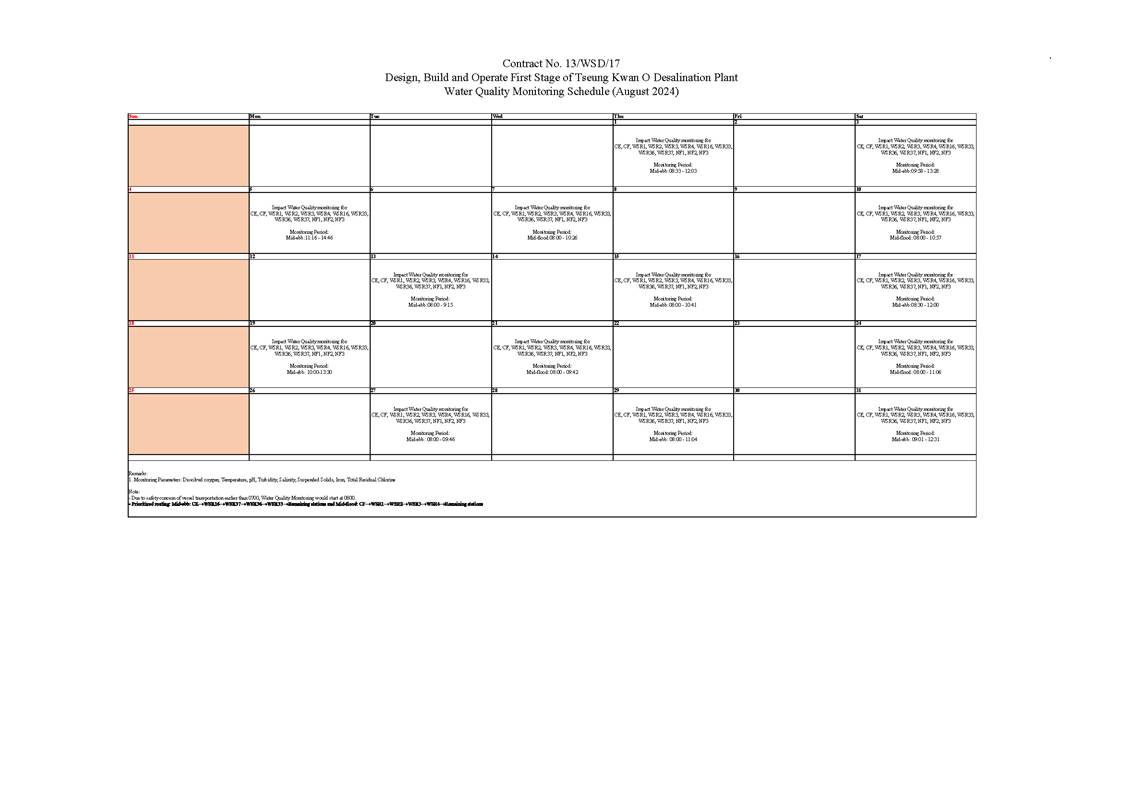 1.4. This is the 2nd Operation Phase Monthly EM&A Report for the Contract which summarizes the key findings of the EM&A programme of the Tseung Kwan O Desalination Plant Operation phase during the reporting period from 1 August 2024 to 31 August 2024.