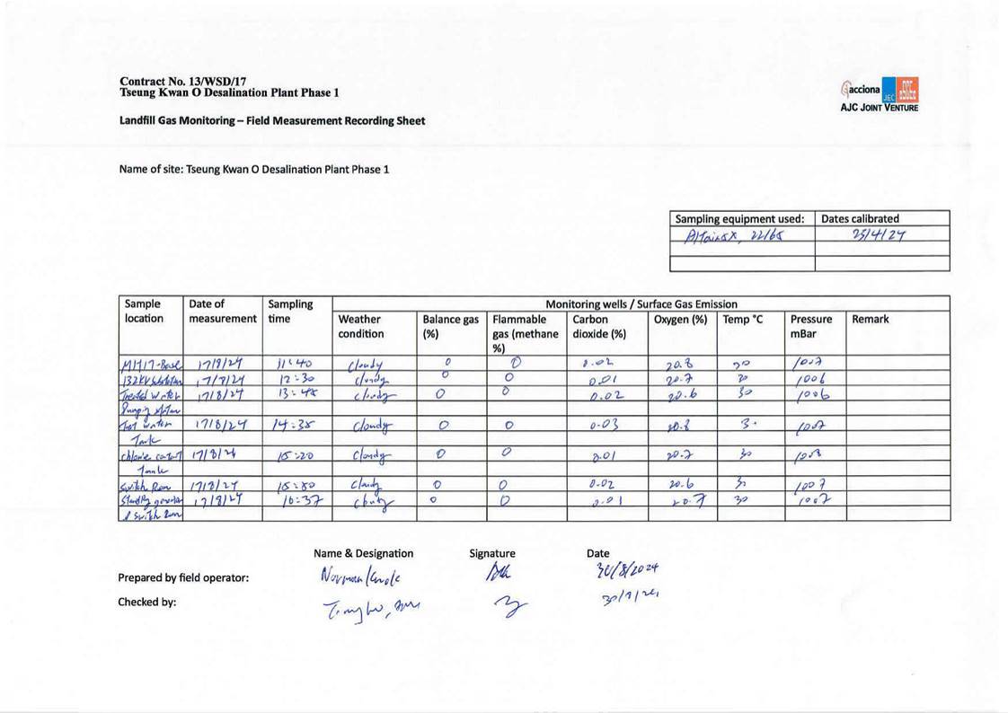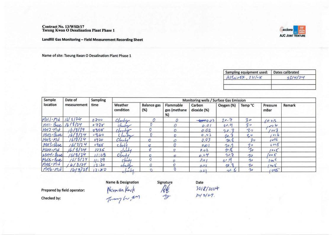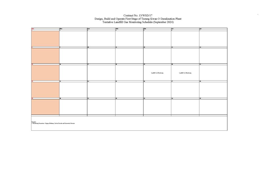 A9. In this reporting period, monthly landfill gas monitoring was conducted on 16 and 17 August 2024. No exceedances of action level and limit level was observed.