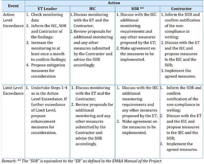 Action Level and twenty-two (22) Limit Level exceedances for SS of impact water quality monitoring were recorded between 16