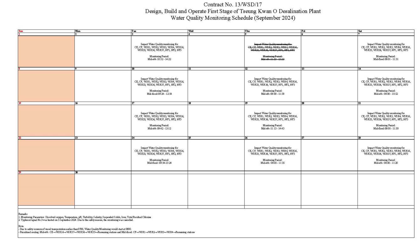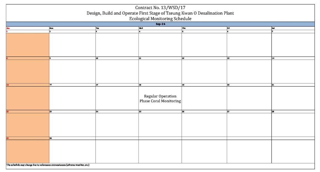 1.4. This is the 3rd Operation Phase Monthly EM&A Report for the Contract which summarizes the key findings of the EM&A programme of the Tseung Kwan O Desalination Plant Operation phase during the reporting period from 1 September 2024 to 30 September 2024.