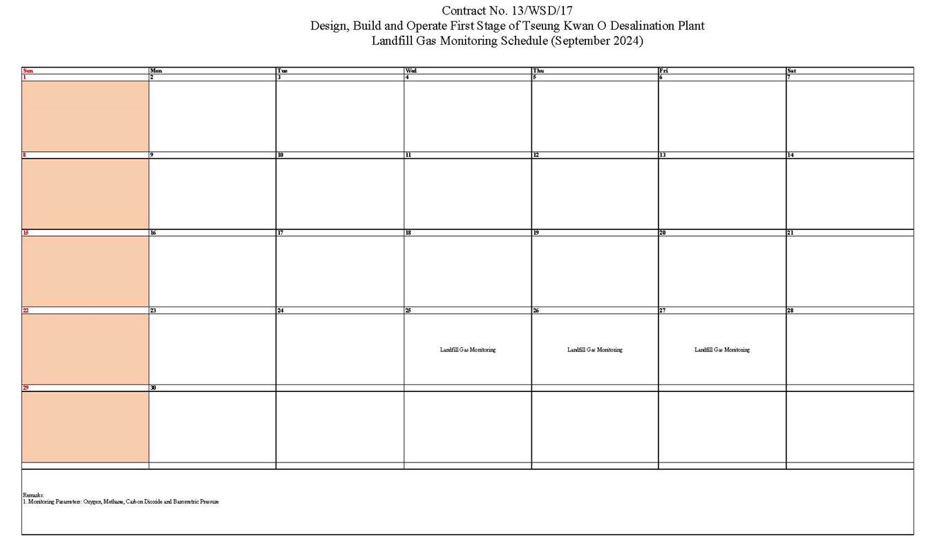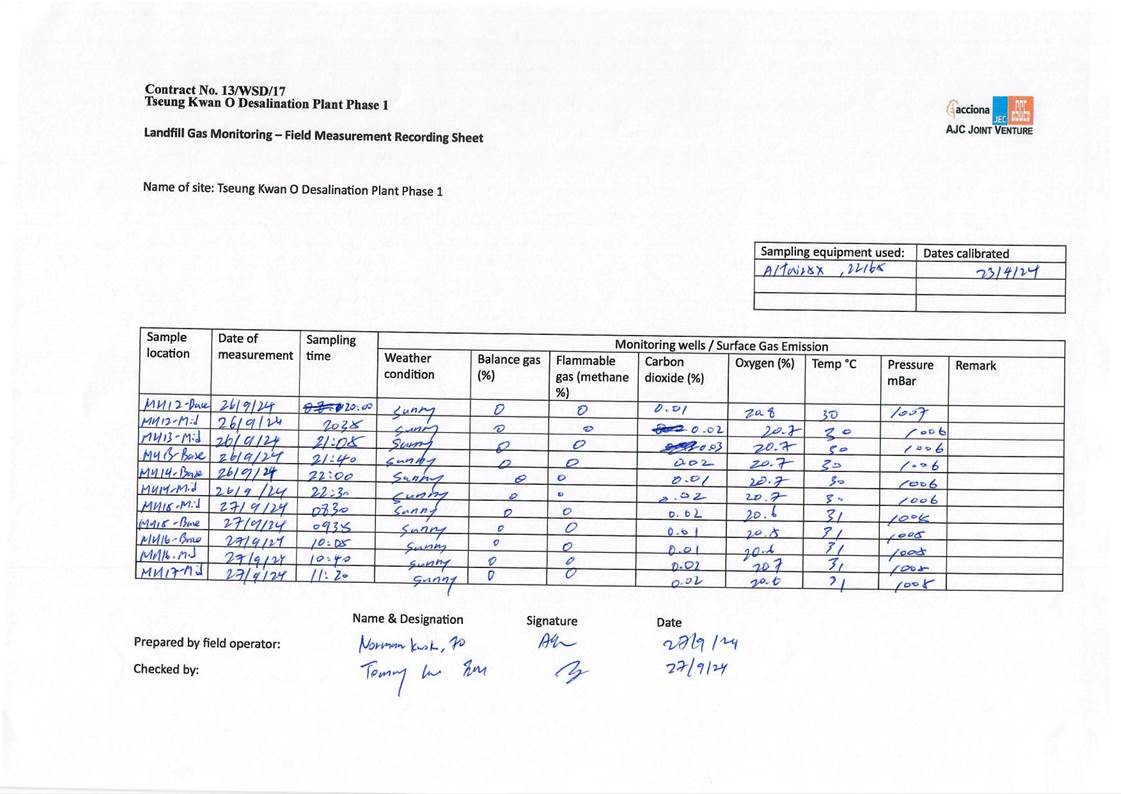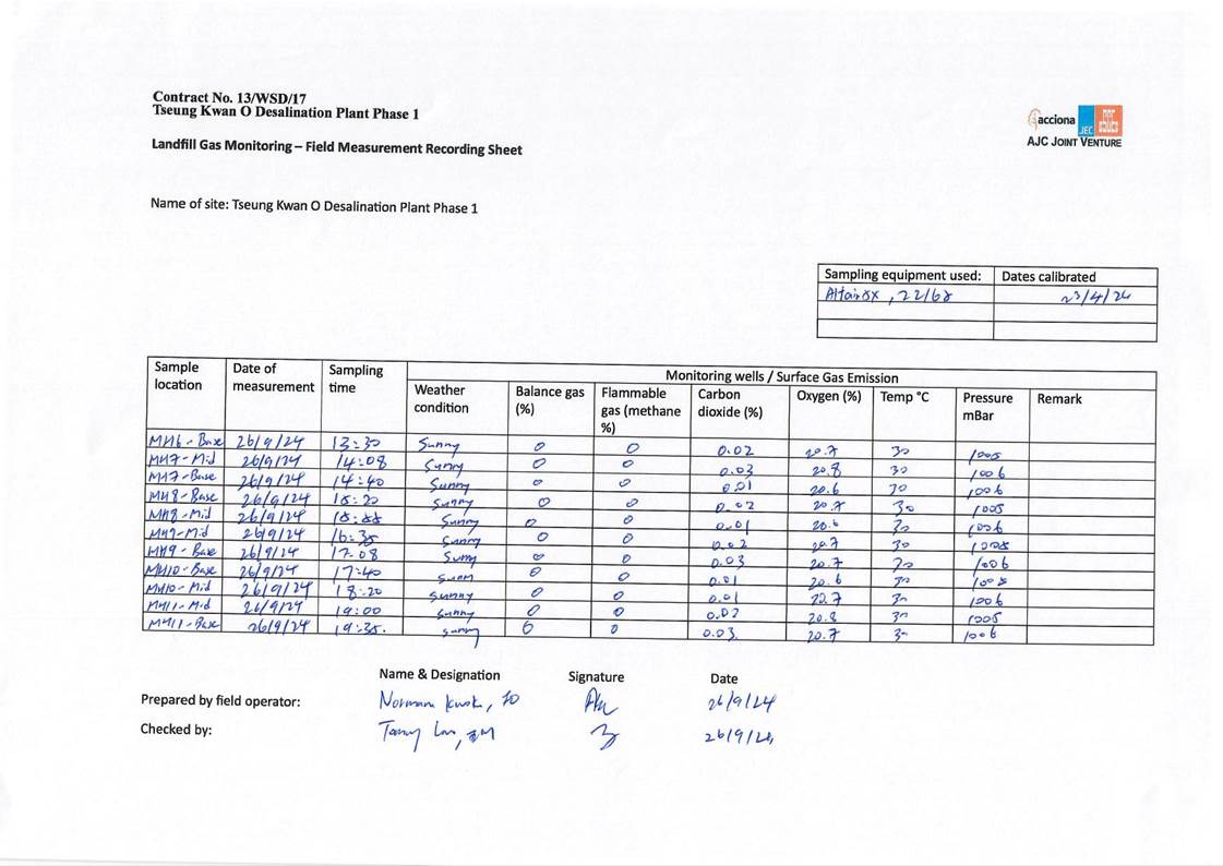 A9. In this reporting period, monthly landfill gas monitoring was conducted on 25, 26 and 27 September 2024. No exceedances of action level and limit level was observed.