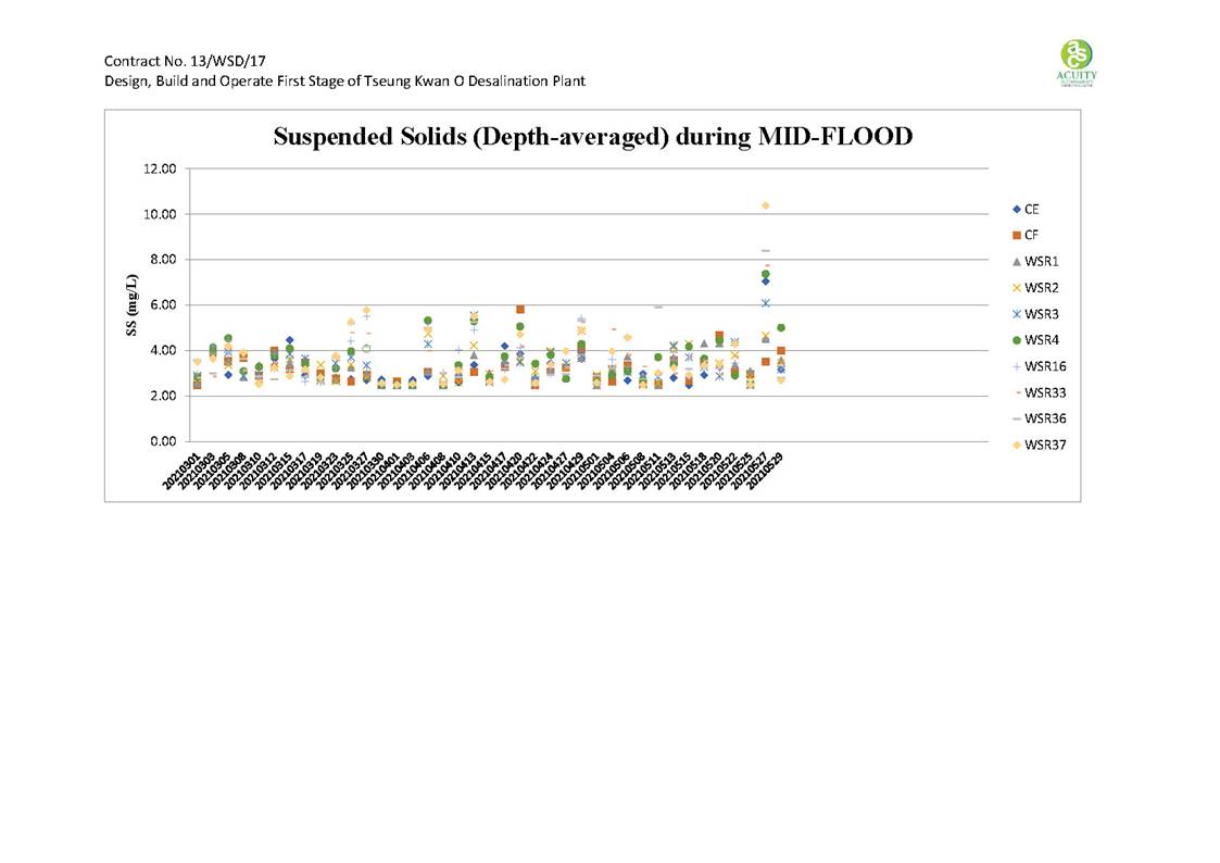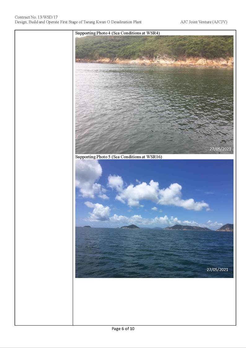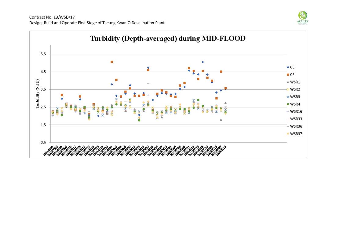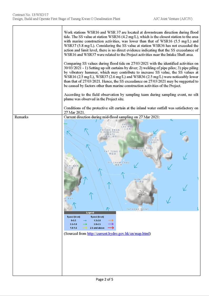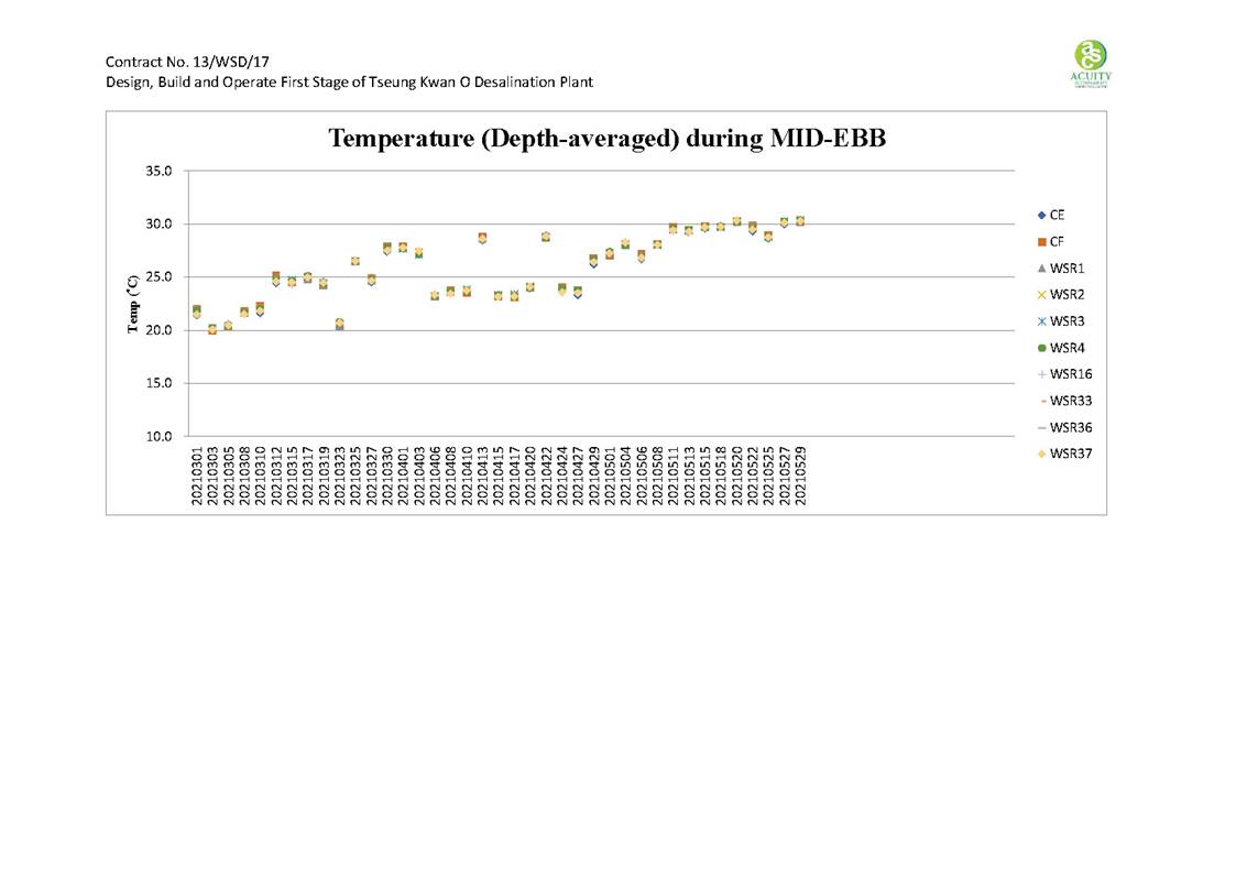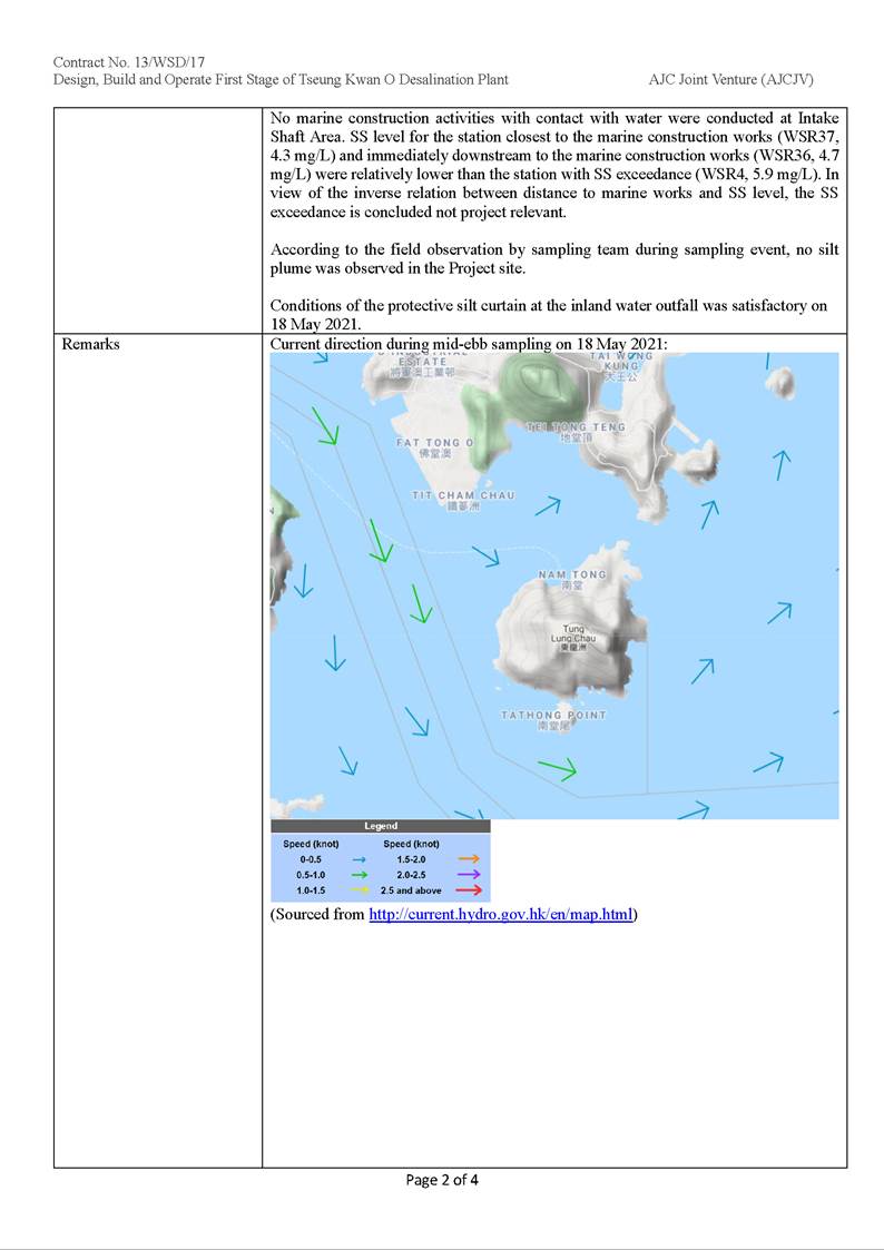 A10. General water quality monitoring at the ten monitoring stations (CE, CF, WSR1, WSR2, WSR3, WSR4, WSR16, WSR33, WSR36 and WSR37) were conducted on 1, 3, 5, 8, 10, 12, 15, 17, 19, 23, 25, 27 and 30 March 2021; 1, 3, 6, 8, 10, 13, 15, 17, 20, 22, 24, 27 and 29 April 2021 and 1, 4, 6, 8, 11, 13, 15, 18, 20, 22, 25, 27 and 29 May 2021.