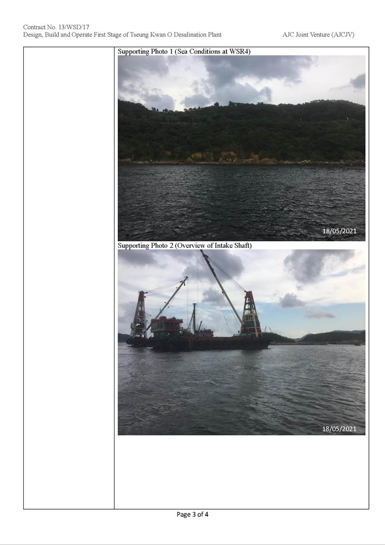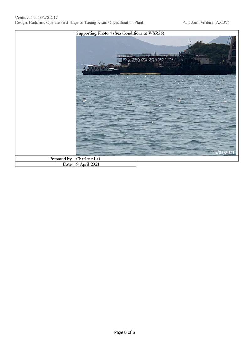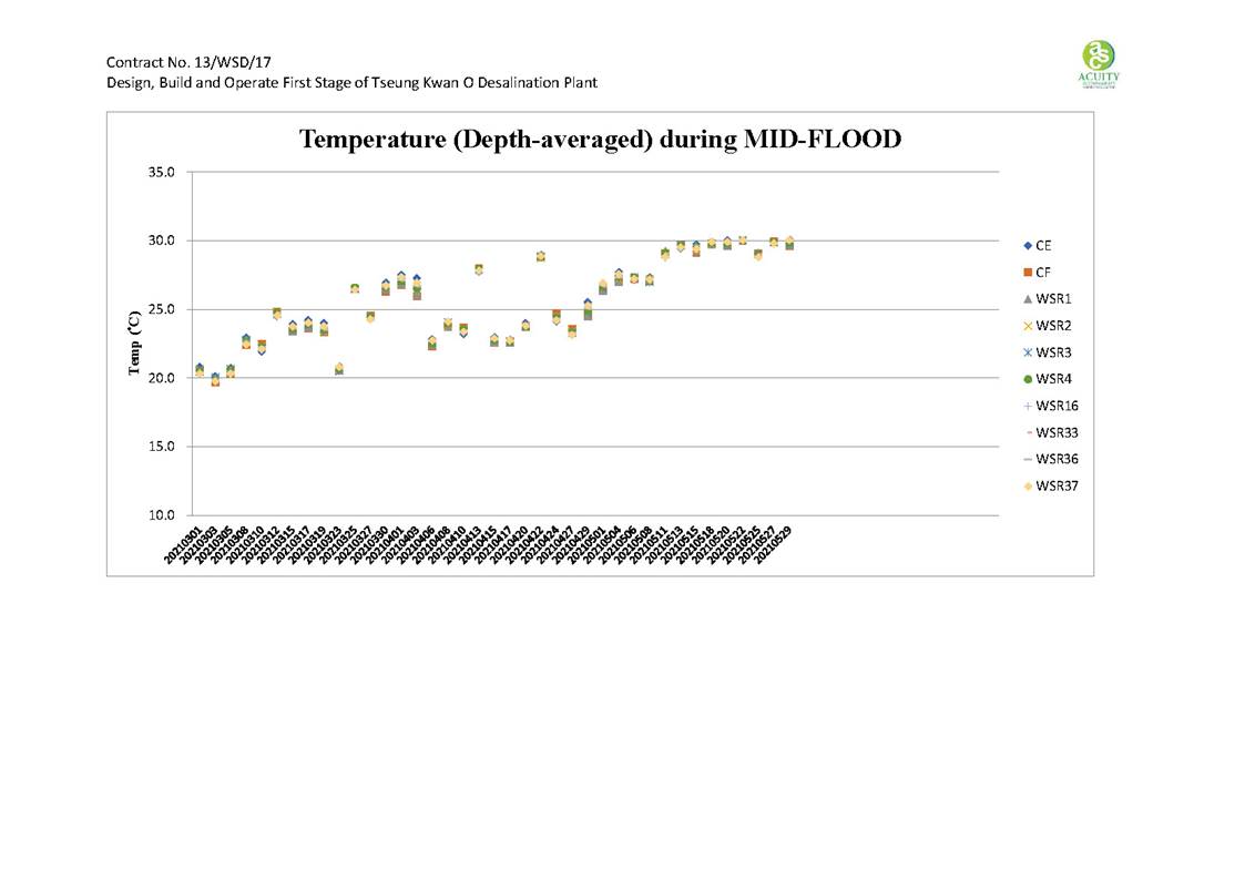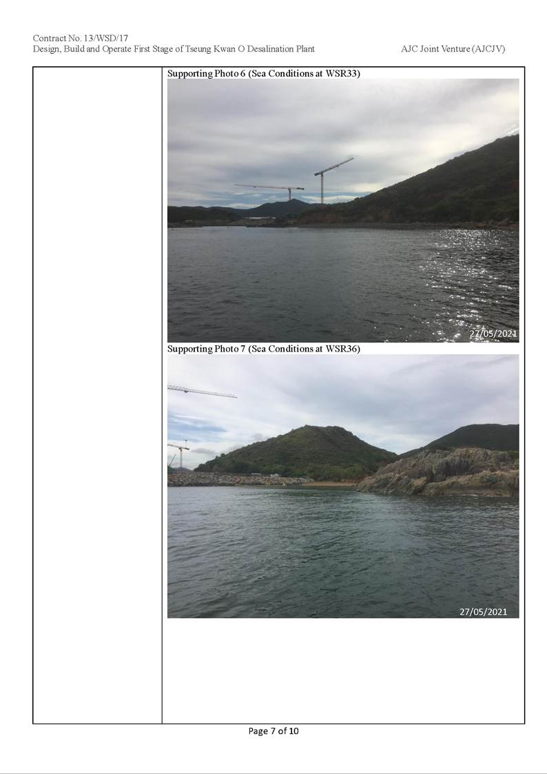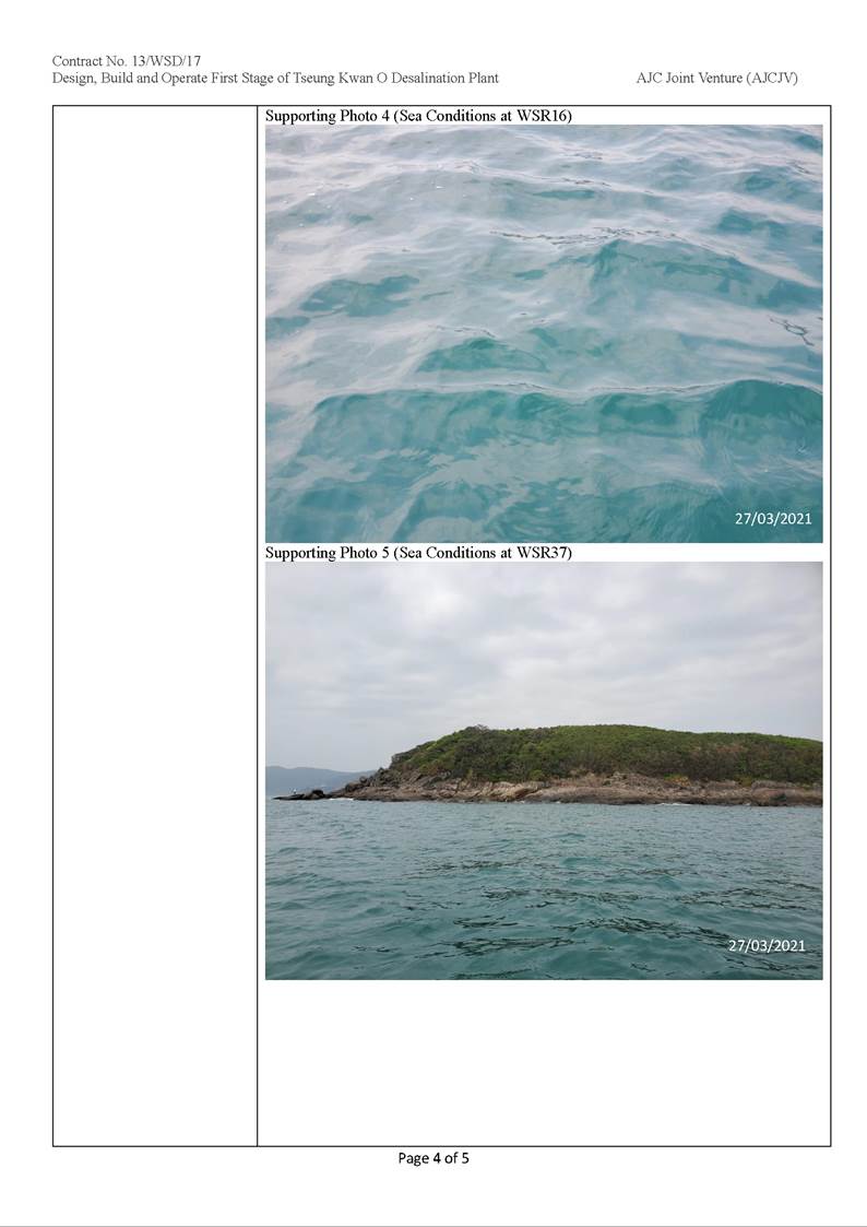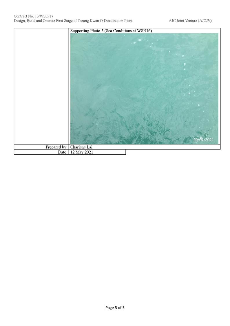 A10. General water quality monitoring at the ten monitoring stations (CE, CF, WSR1, WSR2, WSR3, WSR4, WSR16, WSR33, WSR36 and WSR37) were conducted on 1, 3, 5, 8, 10, 12, 15, 17, 19, 23, 25, 27 and 30 March 2021; 1, 3, 6, 8, 10, 13, 15, 17, 20, 22, 24, 27 and 29 April 2021 and 1, 4, 6, 8, 11, 13, 15, 18, 20, 22, 25, 27 and 29 May 2021.