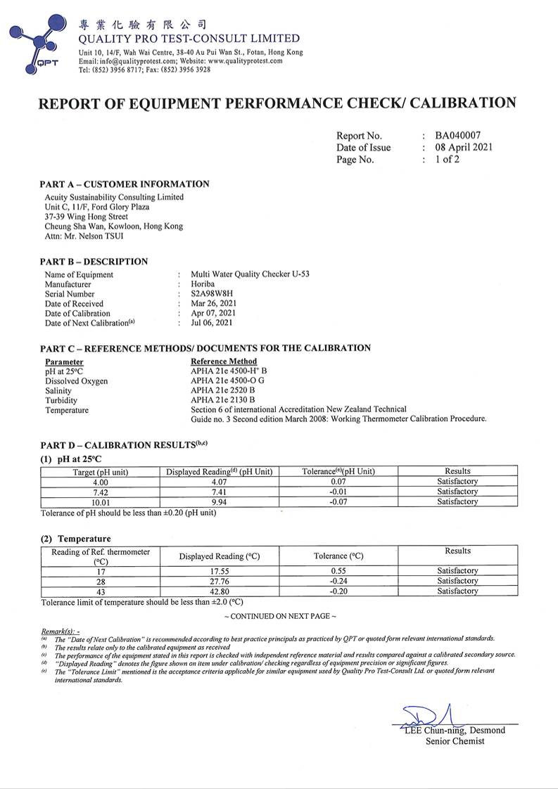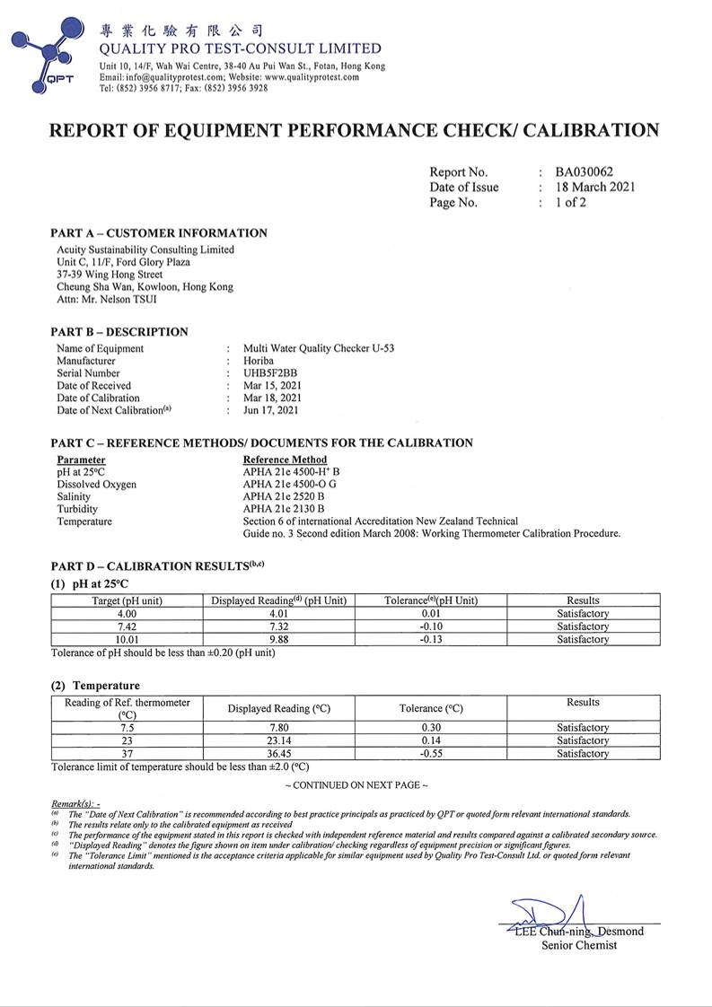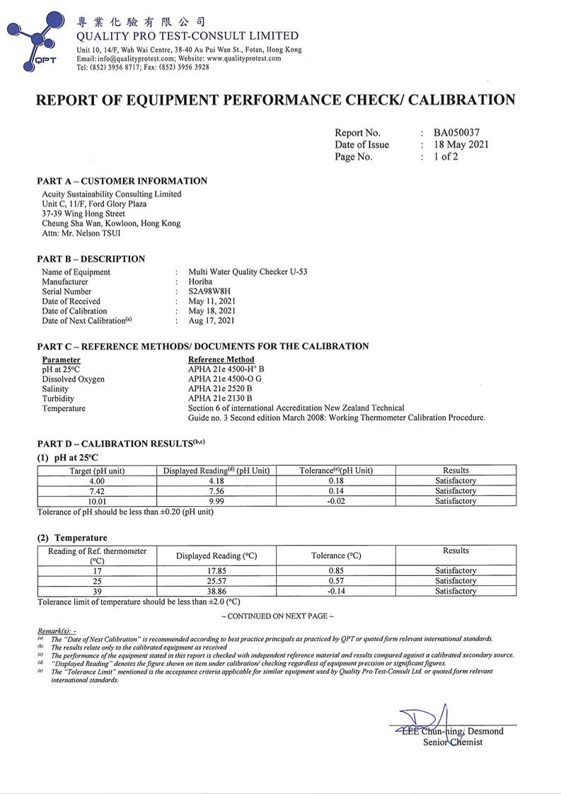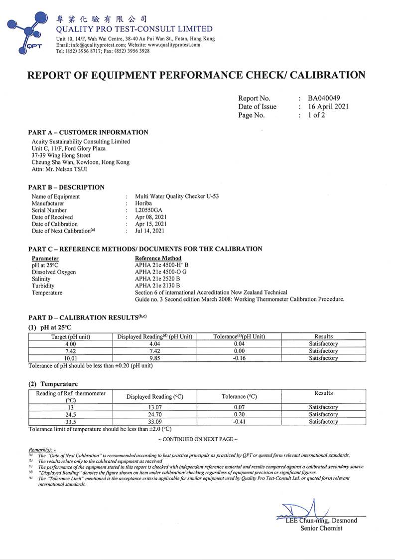 checked, calibrated and certified by laboratory accredited under HOKLAS or any