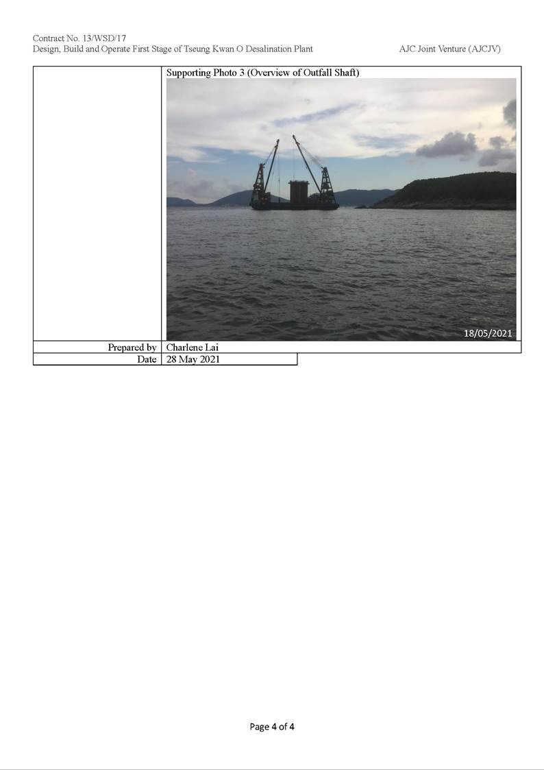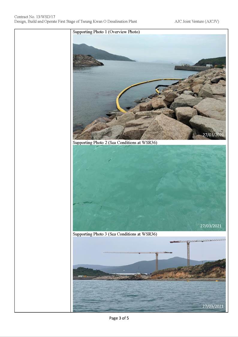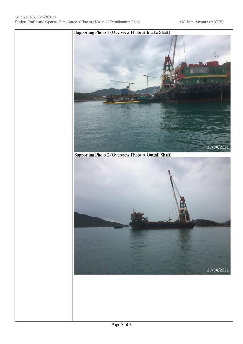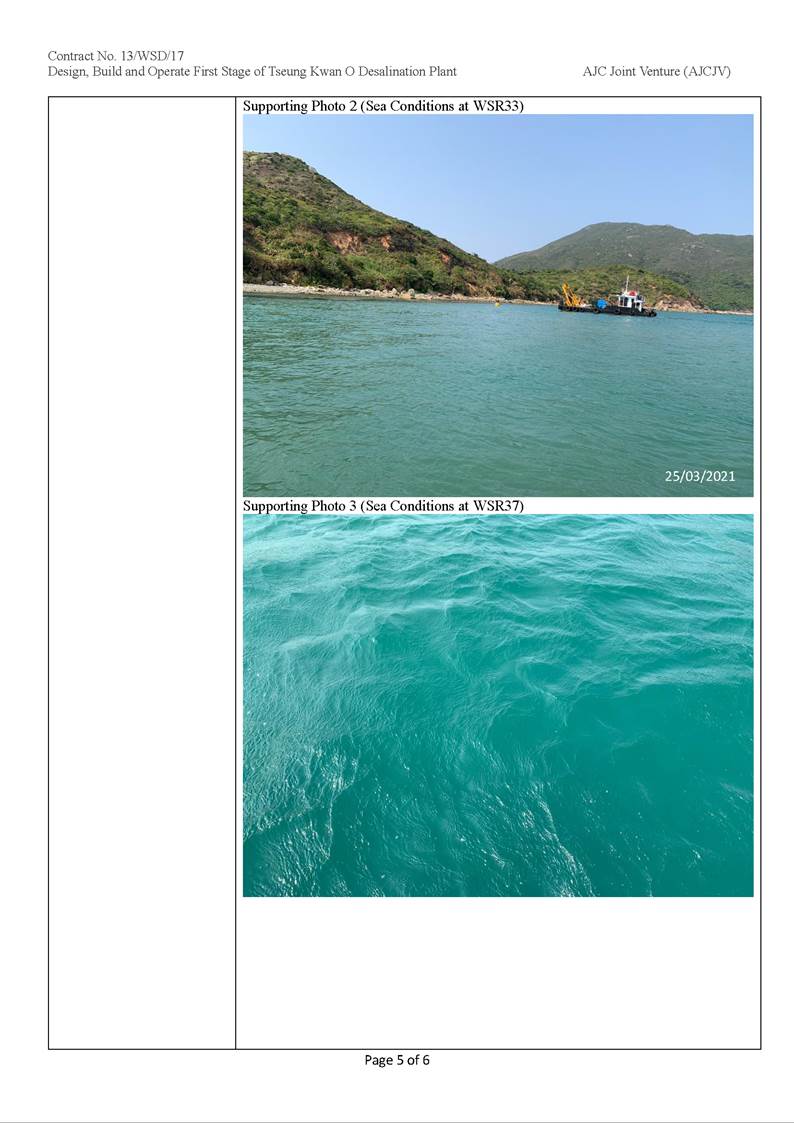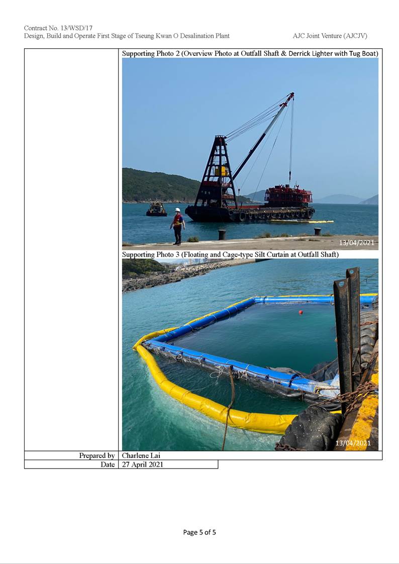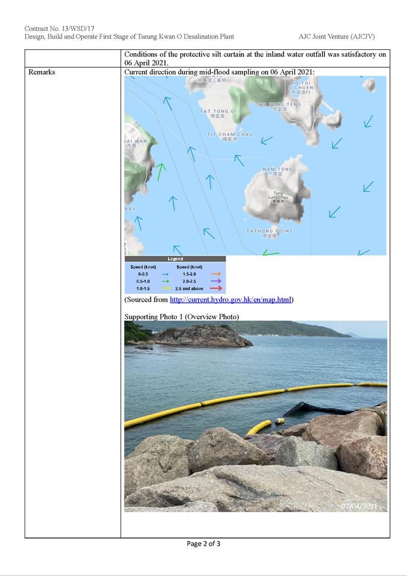 - Deployment of temporary silt curtain in the area where marine construction works were conducted and deployment of water sedimentation tanks for treatment of wastewater at inland areas before discharge