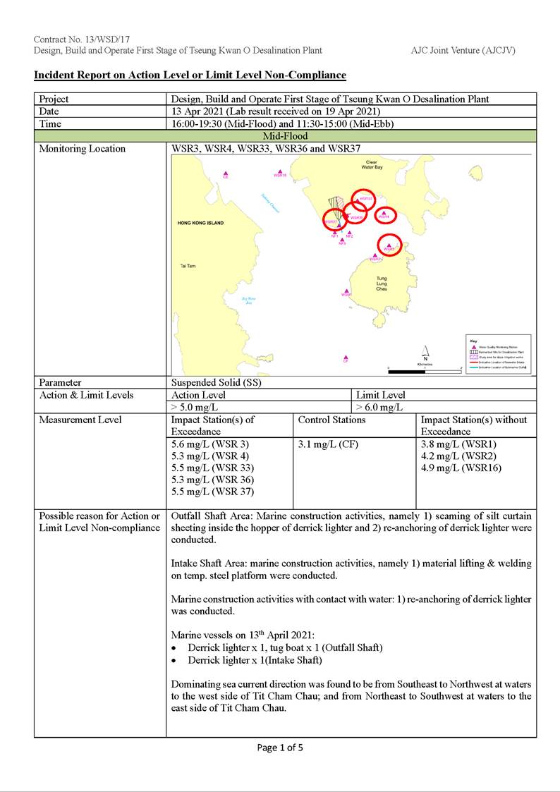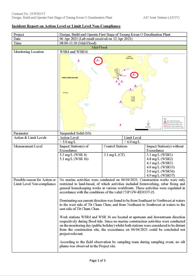 A13. Investigation on the reason of exceedance has been carried out, where the exceedances of SS on 25/3, 27/3,