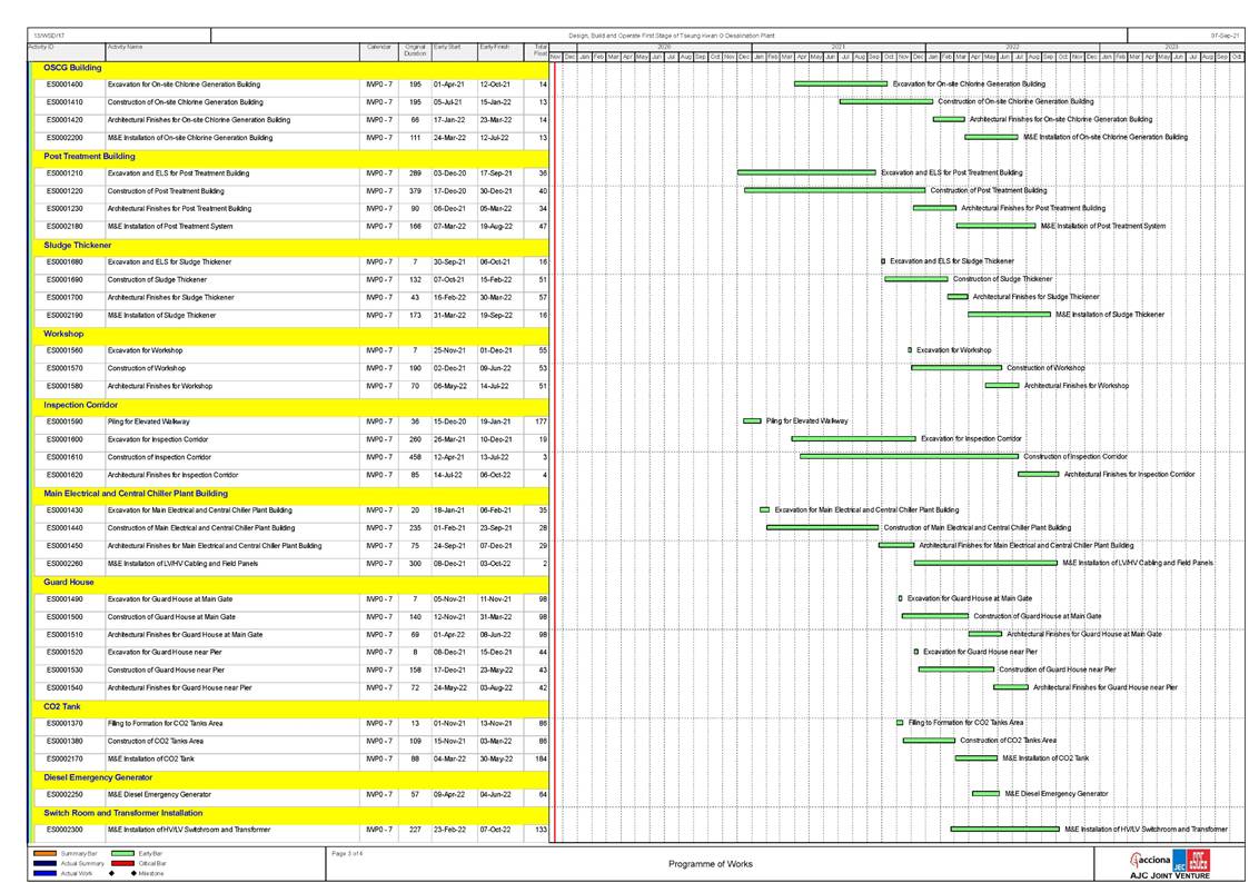 - Construction of Product Water Storage Tank (PWST) perimeter wall and Electrical Building¡¦s roof slab;