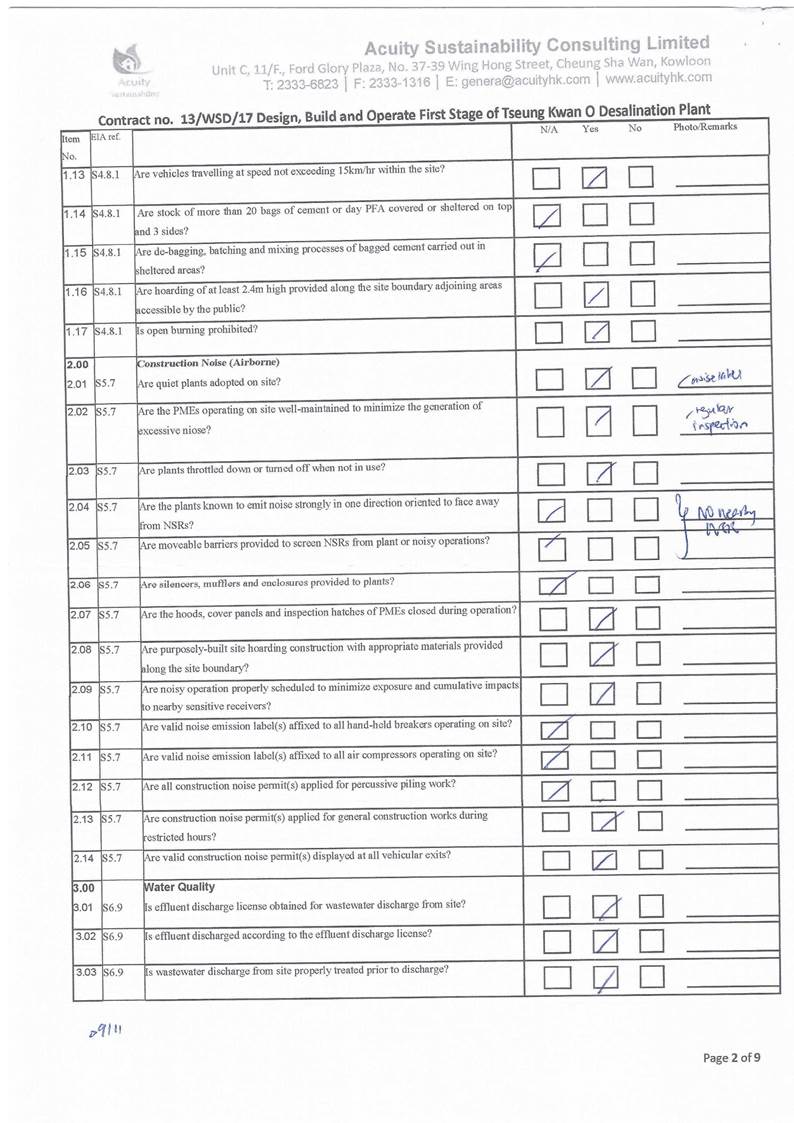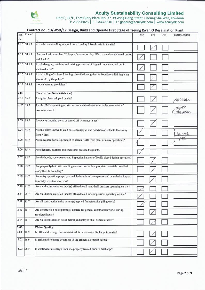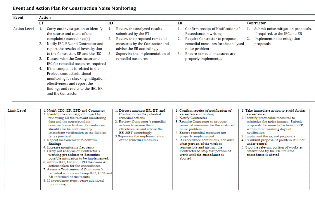 - Construction dust and noise generation from construction and ELS works, pipe piling driven works and marine dredging and construction works