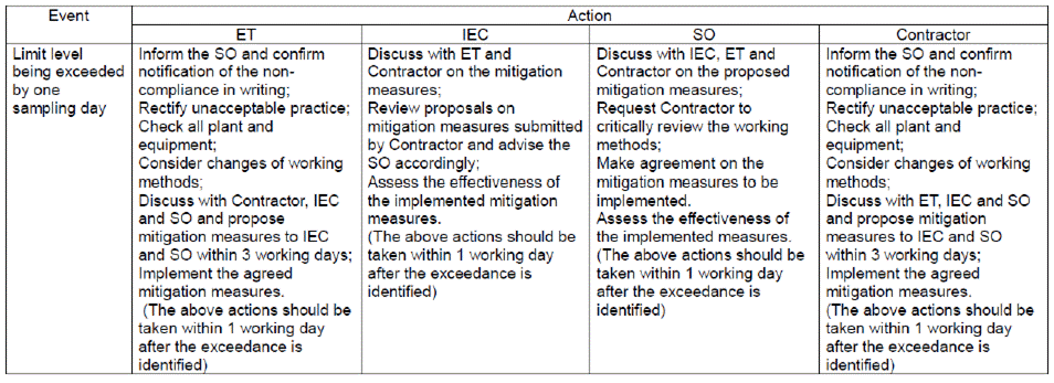 - Construction dust and noise generation from marine construction works, excavation works, ELS installation works, breaking of concrete surface and construction works and pipe piling driving works