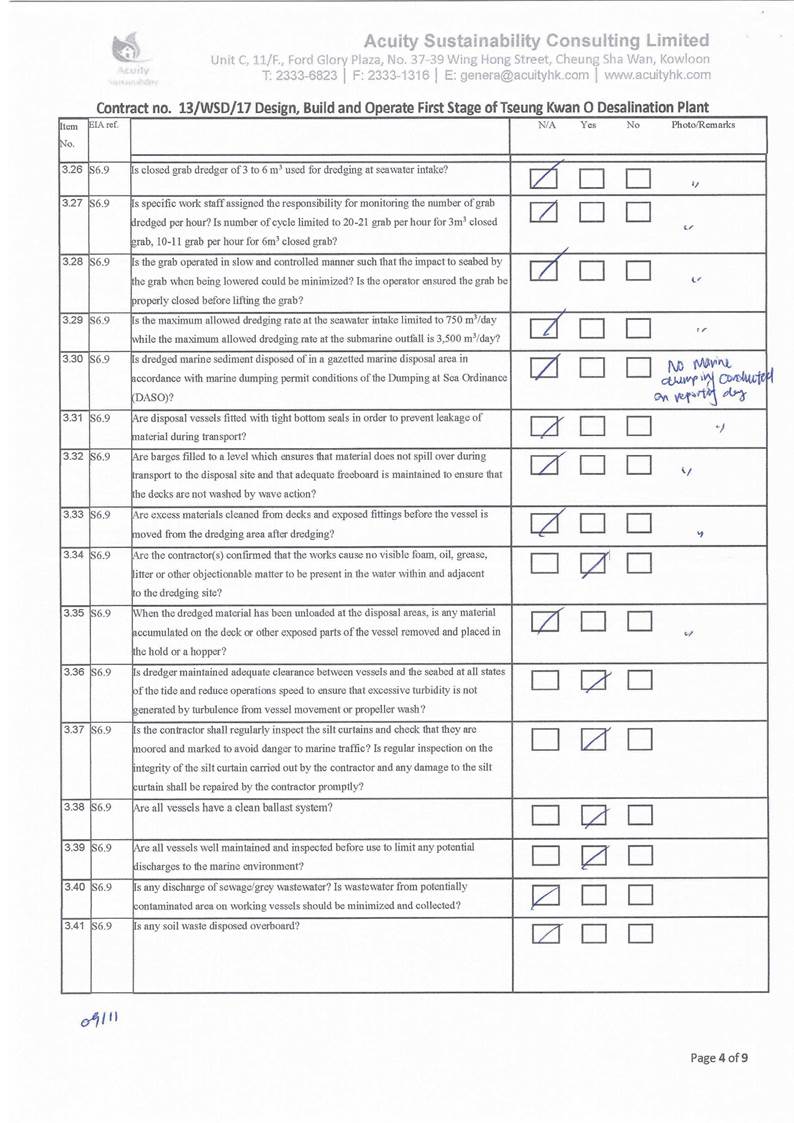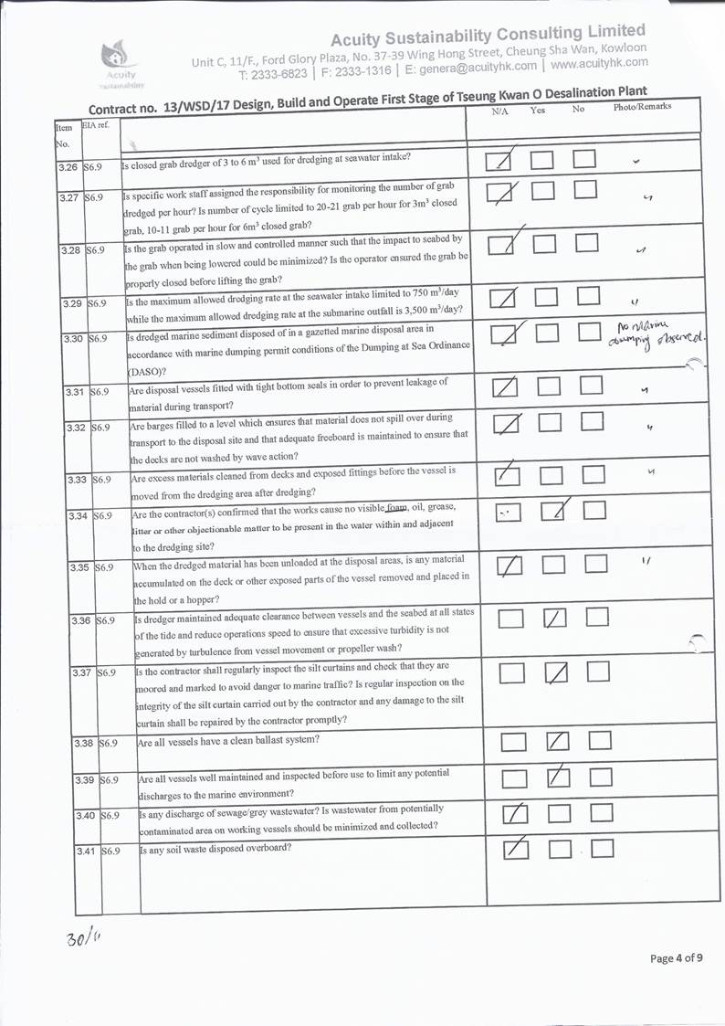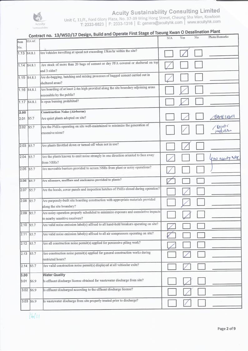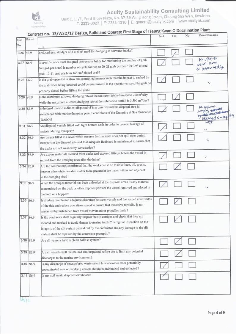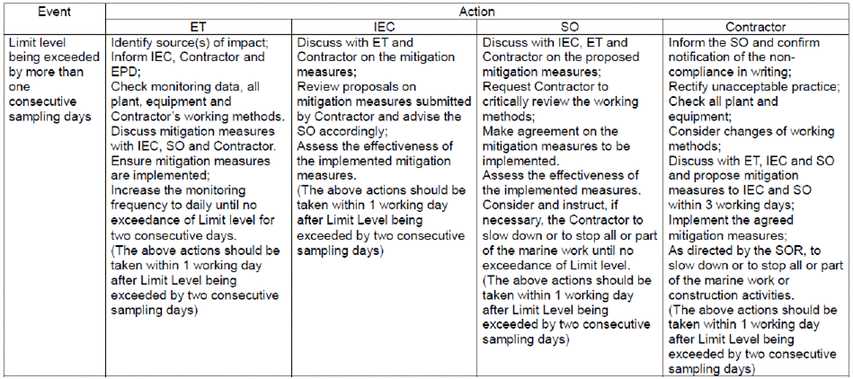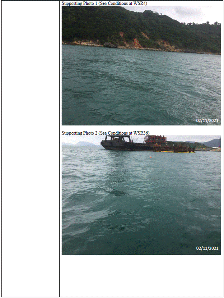 conducted. In view of the inverse relation between distance to marine works and SS level, the SS exceedance is concluded not project relevant. According to the field