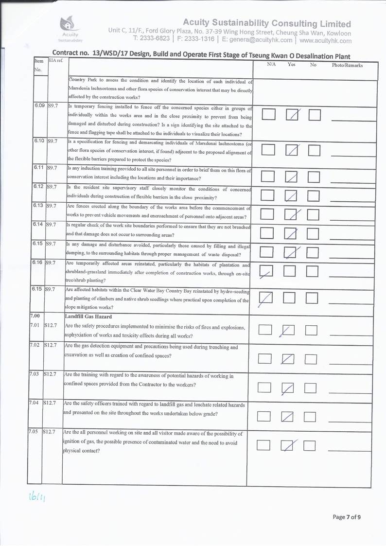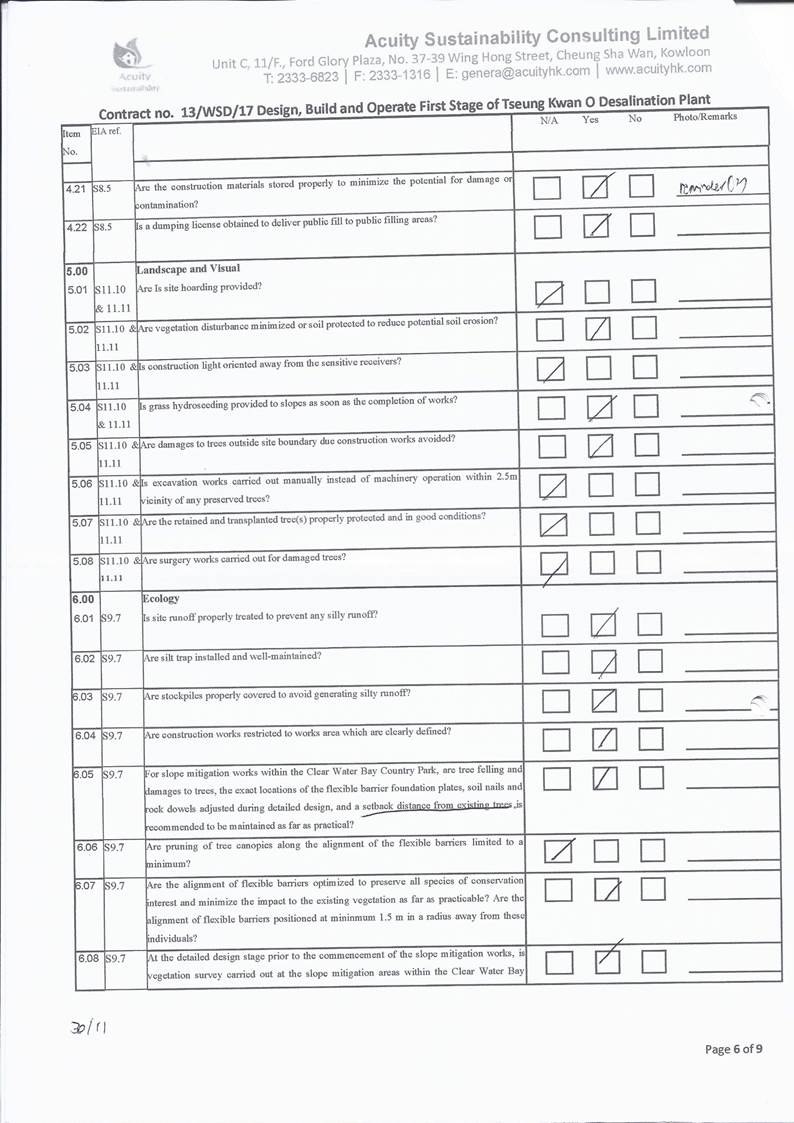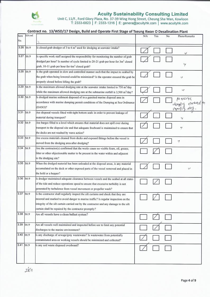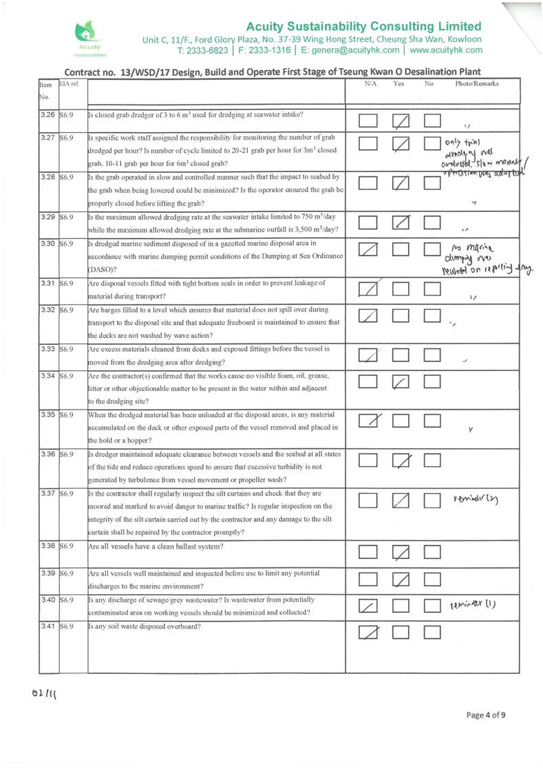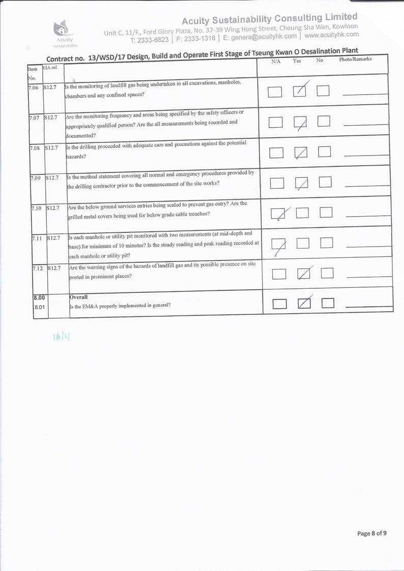 conducted. In view of the inverse relation between distance to marine works and SS level, the SS exceedance is concluded not project relevant. According to the field