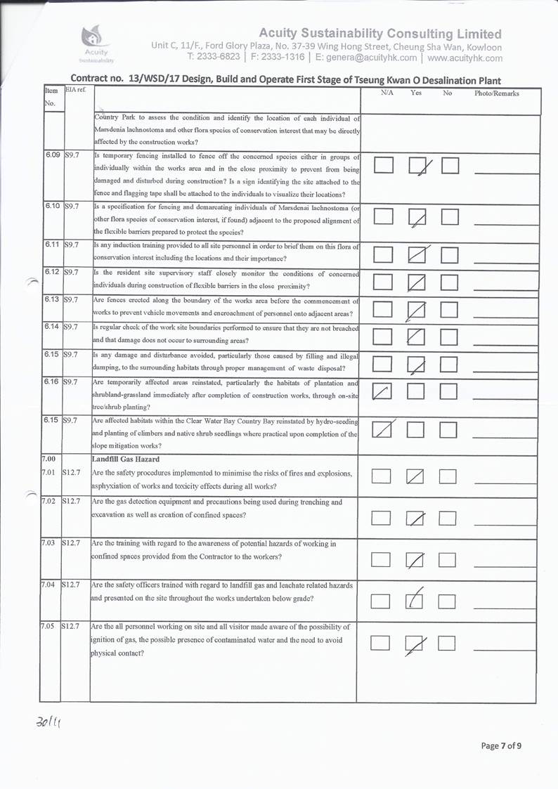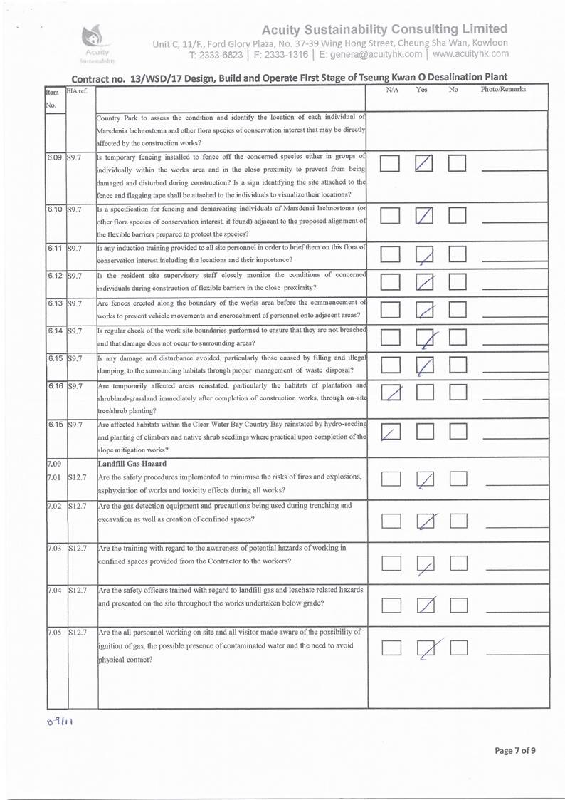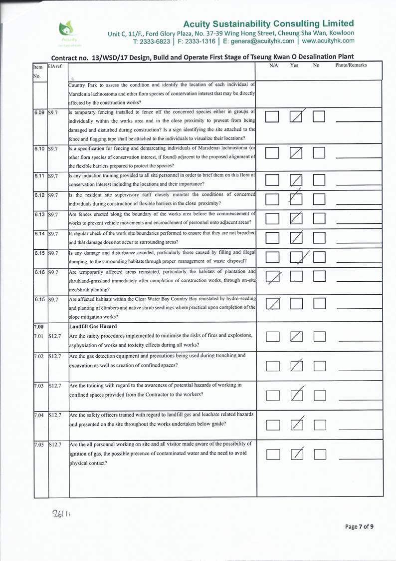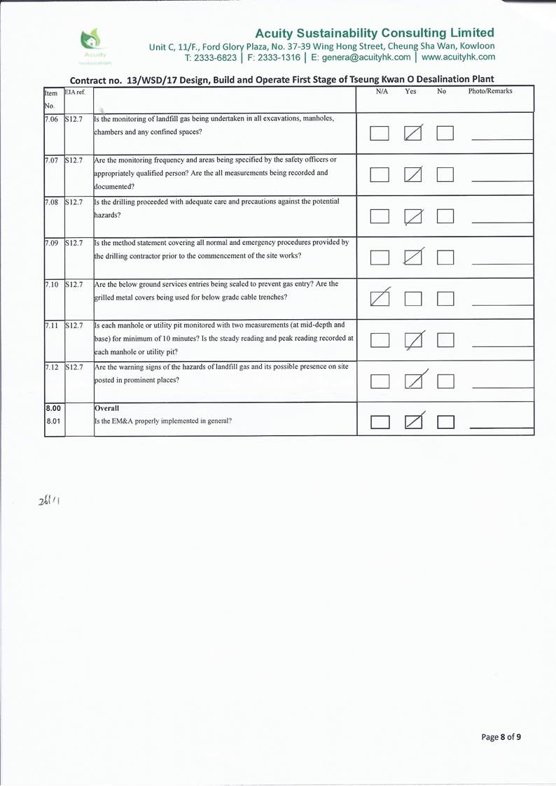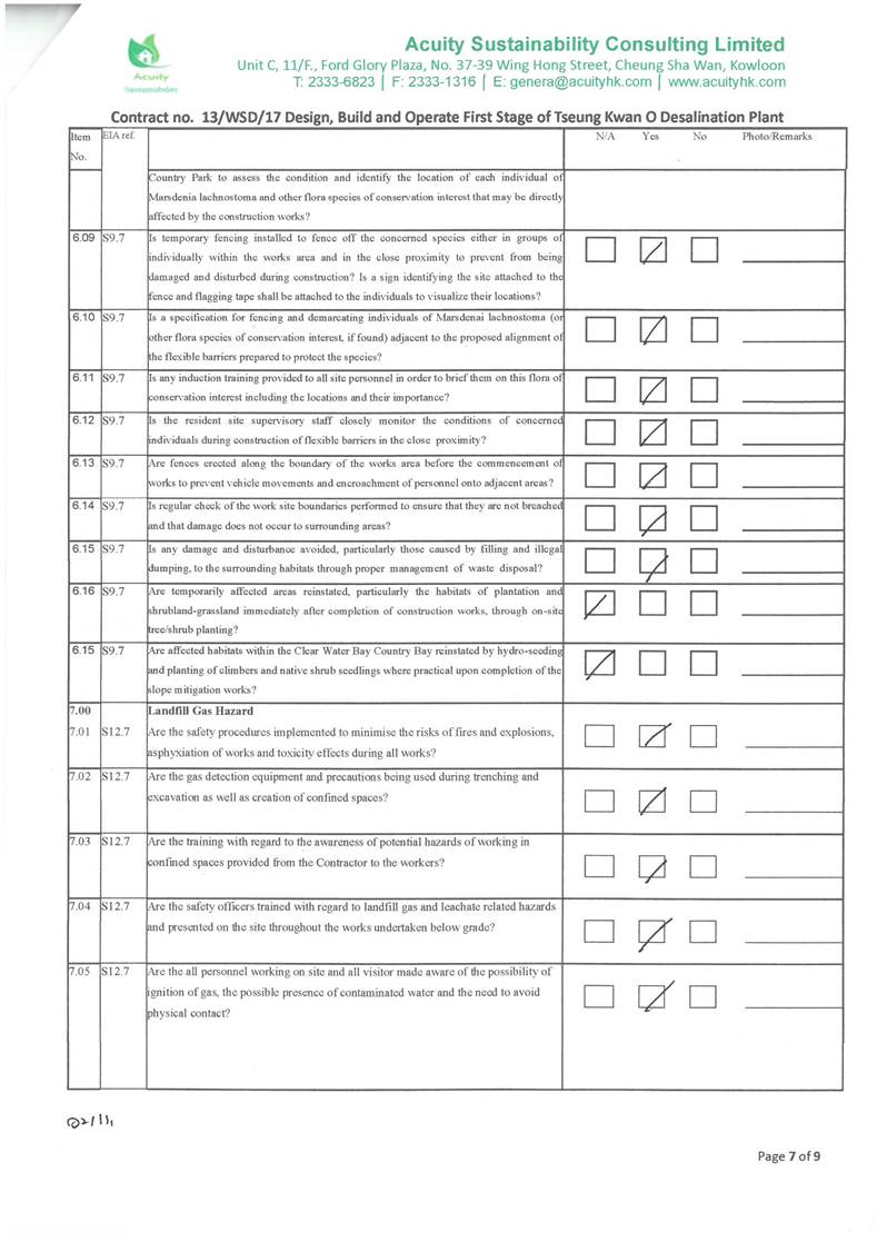 conducted. In view of the inverse relation between distance to marine works and SS level, the SS exceedance is concluded not project relevant. According to the field