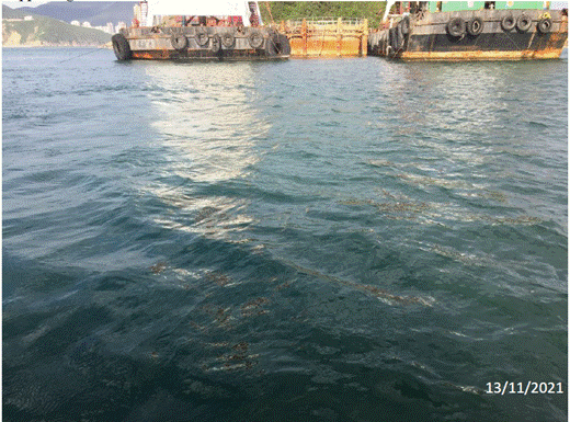 in the Project site on 30 November 2021. Conditions of the protective silt curtain at the inland