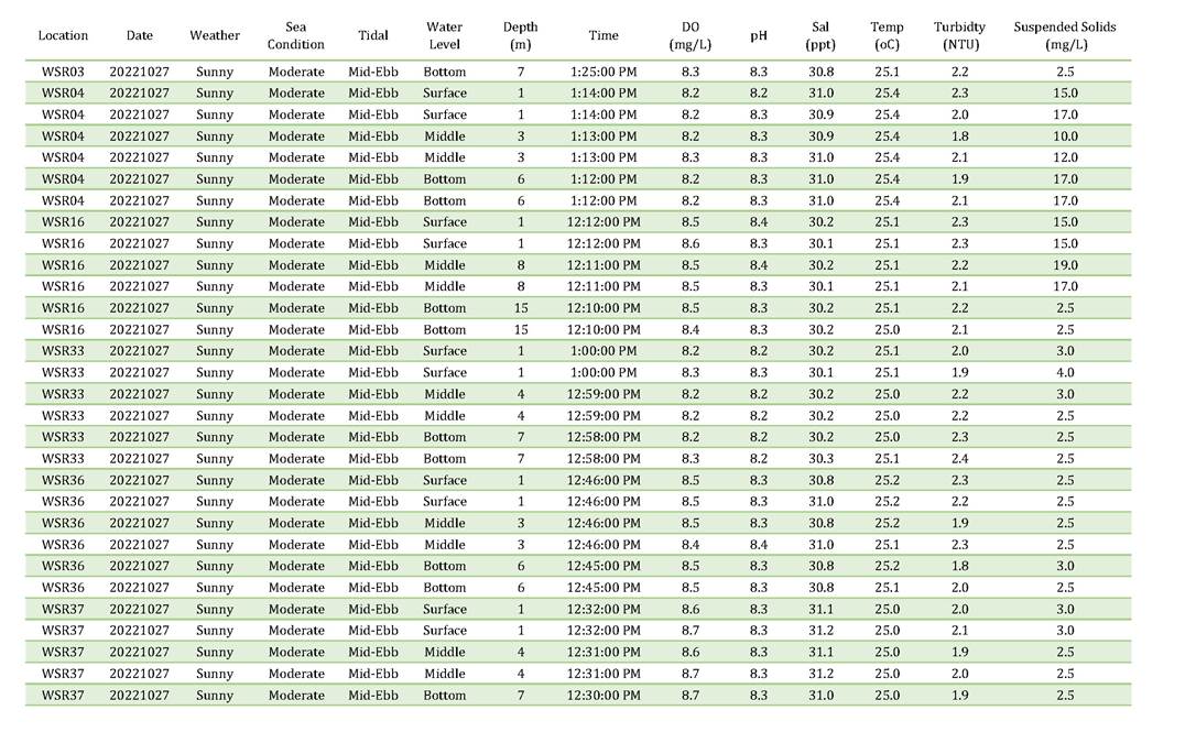 A11. Investigation on the reason of exceedance has been carried out, where the exceedances of SS on 4, 6, 8, 13, 15, 18, 20, 22, 25, 27 and 29 October 2022 were concluded to be unrelated to the Contract as detailed in the Incident Reports on Action Level or Limit Level Non-compliance along with supporting materials in Appendix K.
