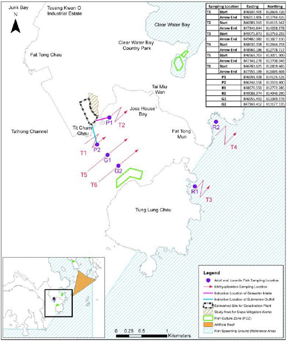 A13. Pre-operation phase fishery monitoring for dry season 2024 was carried out on 17 and 24 February 2024. The survey findings showed that the abundance and diversity of fish eggs and larvae are on the low side for the Study Area, and the abundance and diversity of juveniles are very low for the Study Area. Survey findings also showed that there was a very week relationship in recorded families between ichthyoplankton assemblages, adult fish and juvenile fish in the Study Area, which implies that the Study Area does not appear to be an important spawning or nursery grounds for commercial fishes. The detail of the monitoring is presented in Appendix I.