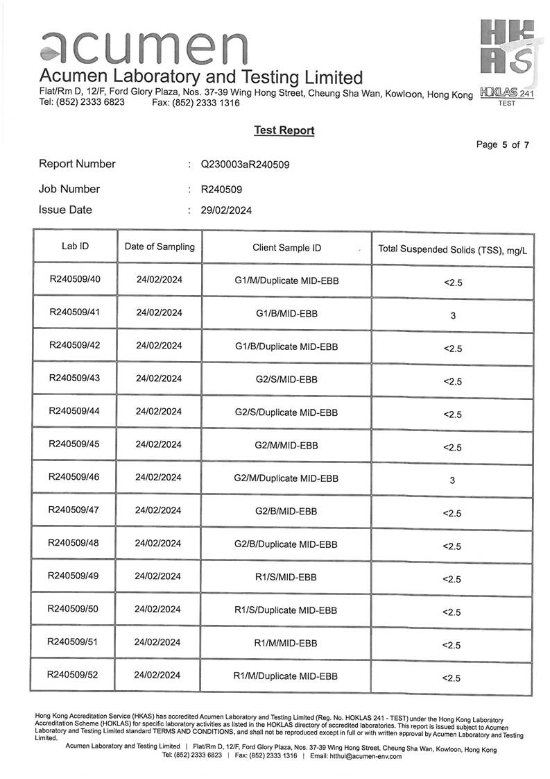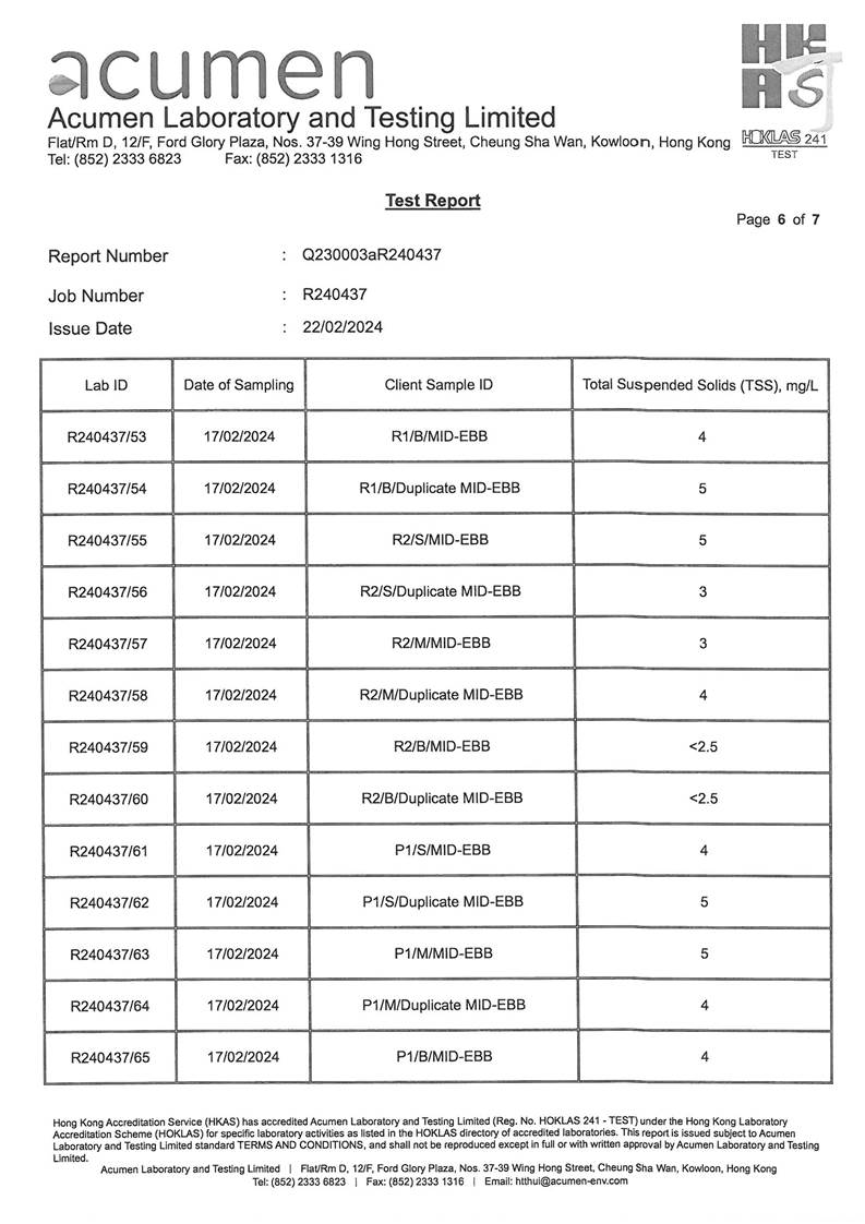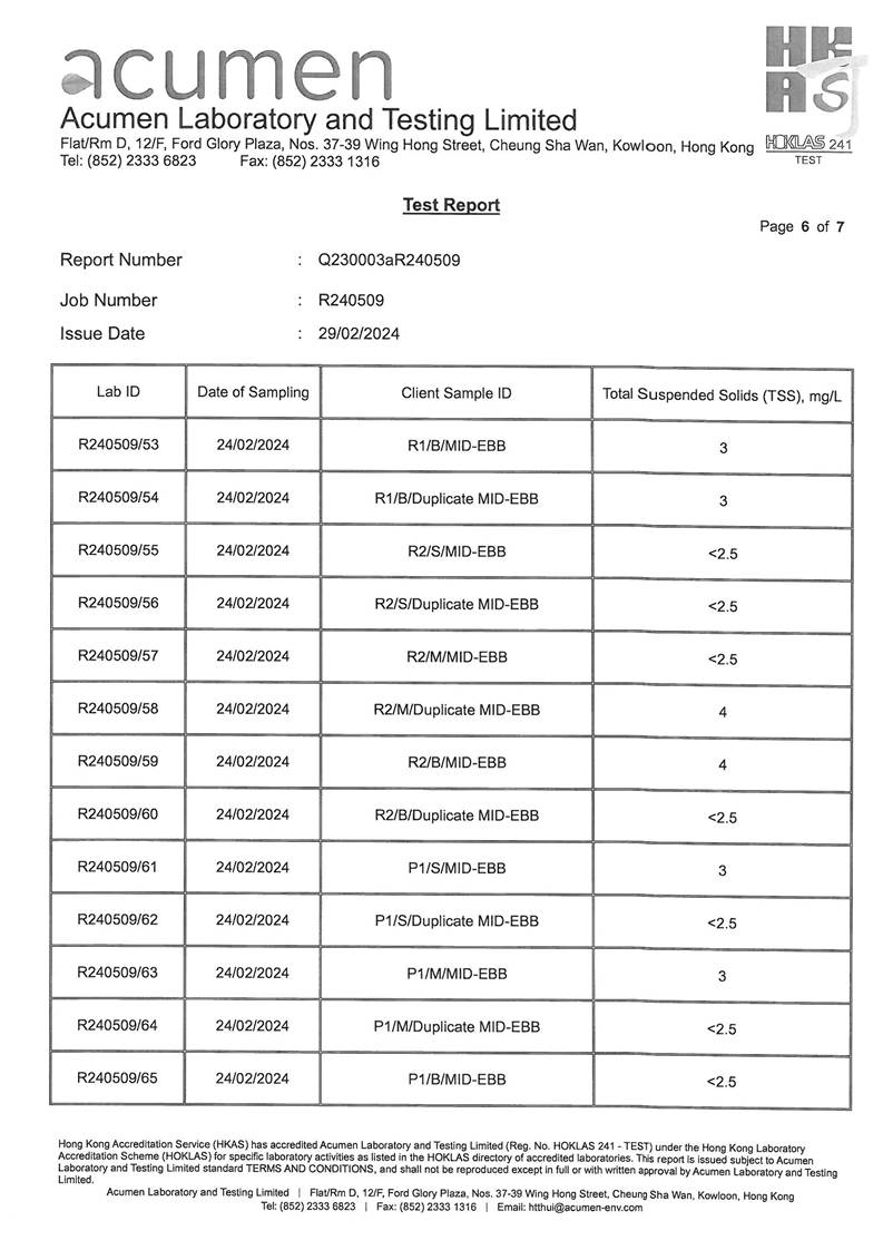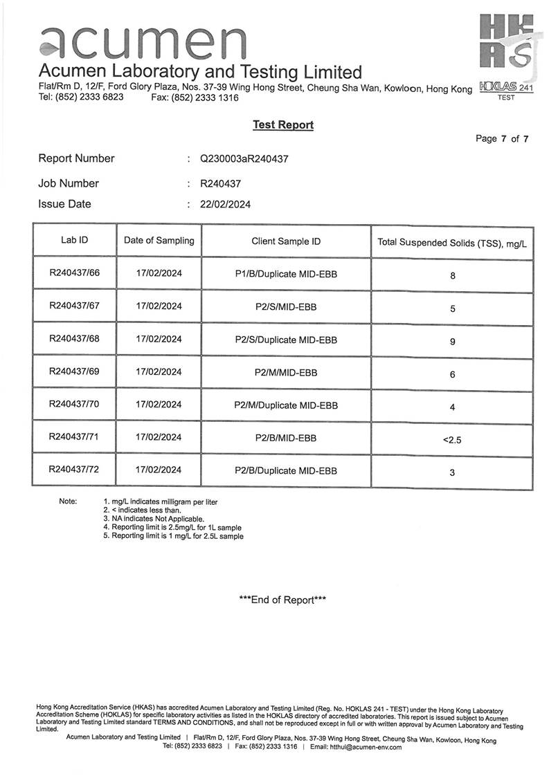 A10. The EM&A works for Pre-operation phase marine water quality were conducted during the reporting period in accordance with the EM&A Manual. Thirty-eight (38) of the pre- operation phase water quality monitoring results of SS obtained had exceeded the Action Level. Twenty-two (22) of the pre-operation phase water quality monitoring results of SS obtained during the reporting period had exceeded the Limit Level.