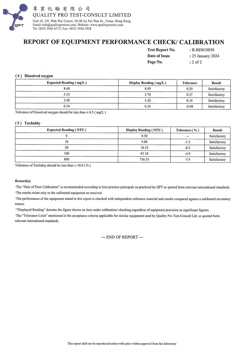 Appendix F Water Quality Monitoring Equipment and Landfill Gas Equipment Calibration Certificate
