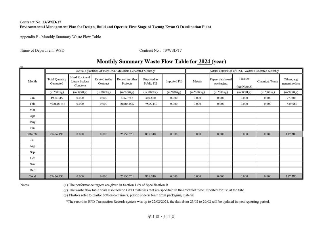 A3. This is the 48th Monthly EM&A Report, prepared by ASCL, for the Contract summarizing the monitoring results and audit findings of the EM&A programme at and around Tseung Kwan O Area 137 (TKO 137) during the reporting period from 1 February to 29 February 2024.