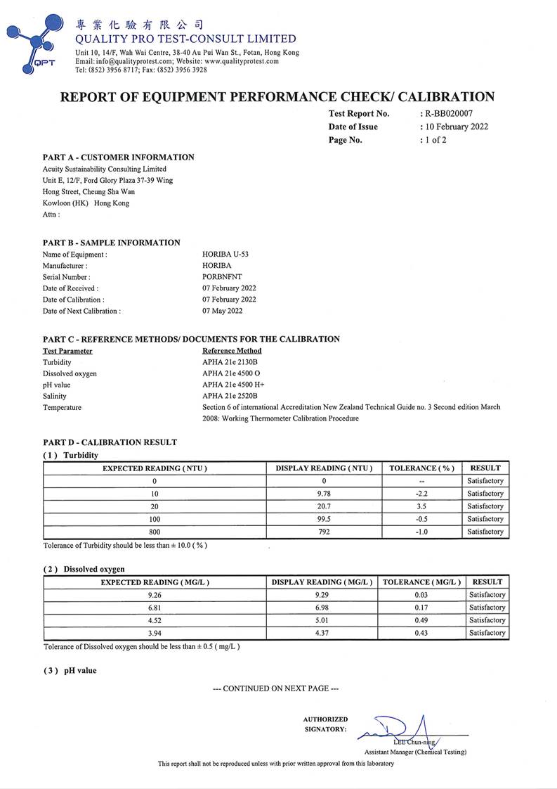Appendix F Noise Monitoring Equipment Calibration Certificate (Blank) Appendix G Event/Action Plan for Water Quality Exceedance