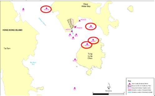 - Construction dust and noise generation from marine construction works, excavation works, construction works, rock cutting works and pipe piling driving works