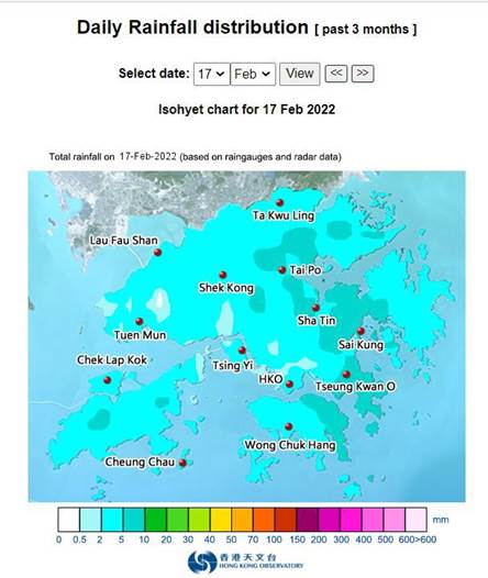 to Hong Kong Observatory Daily Rainfall record on 22 February 2022, rainfall