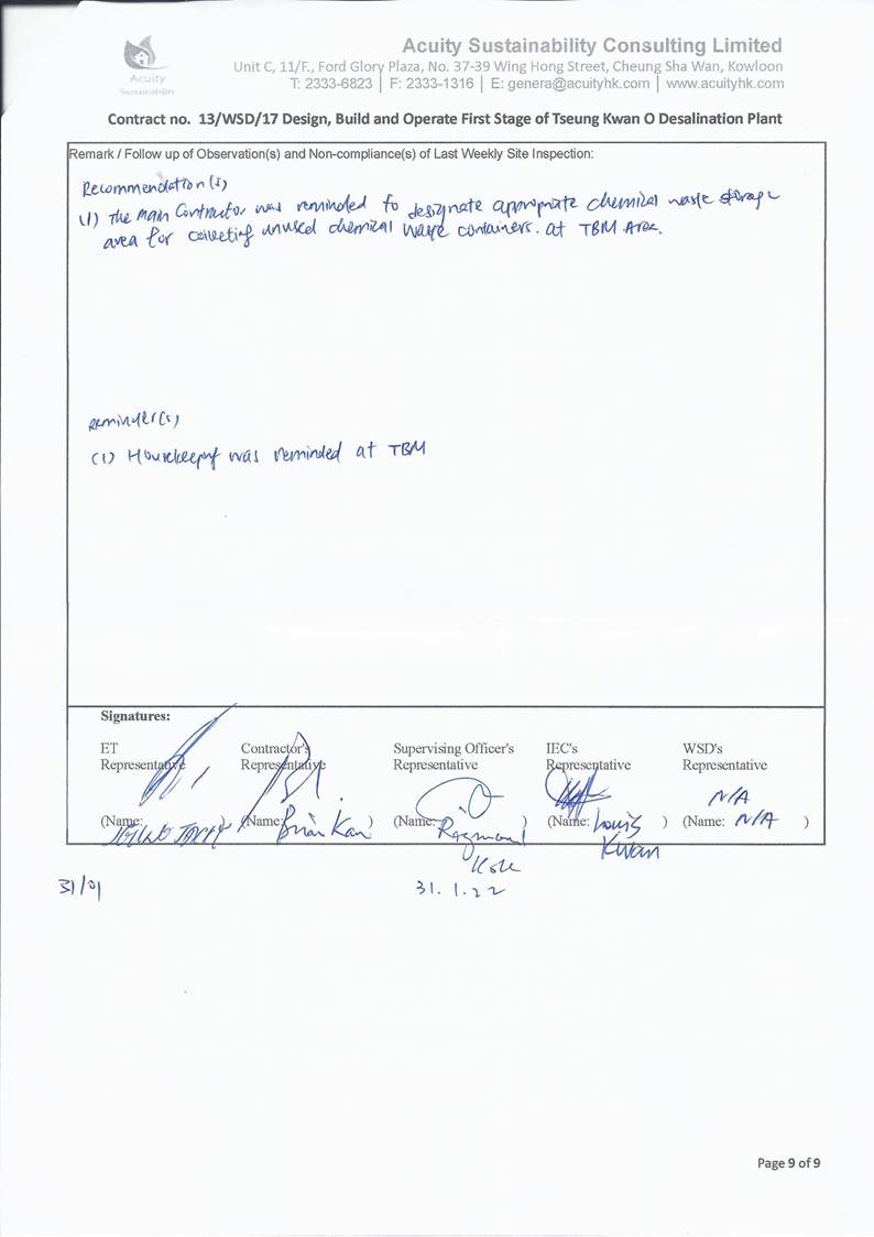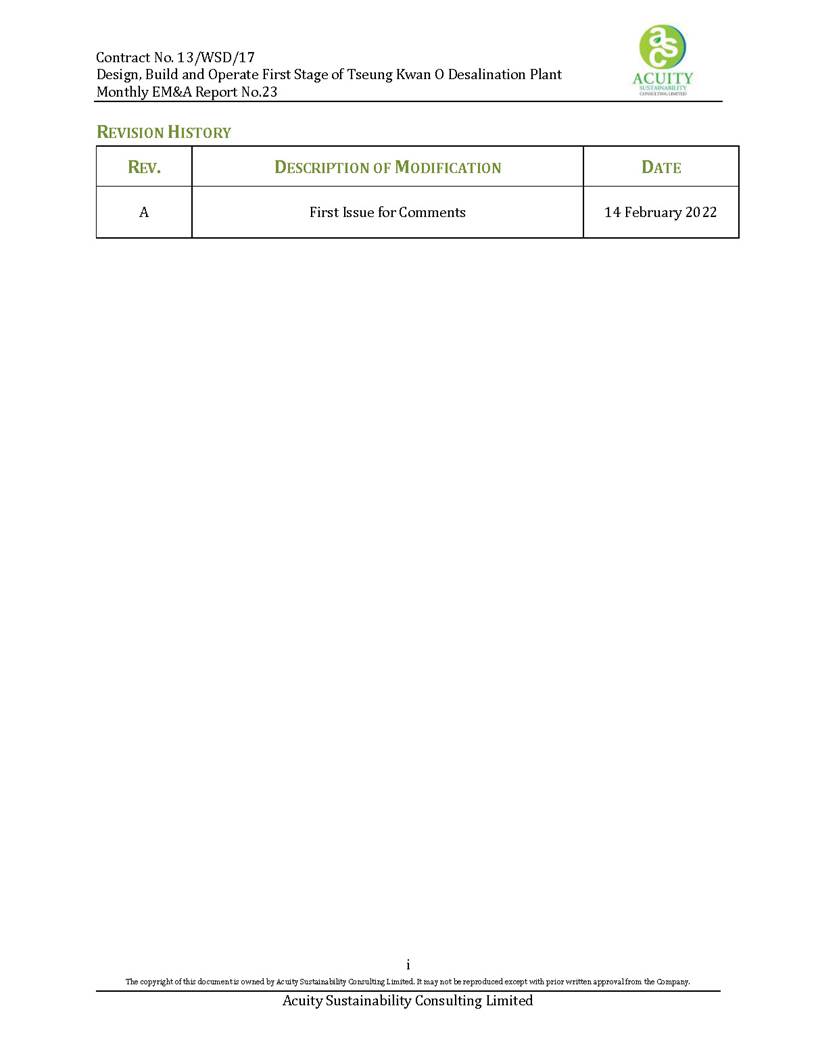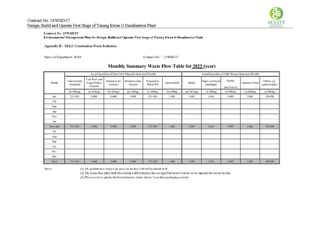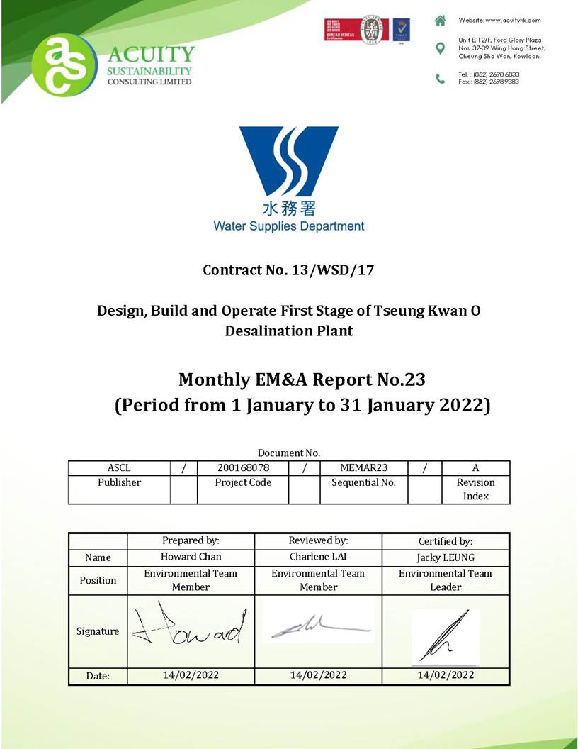 A3. This is the 23rd Monthly EM&A Report, prepared by ASCL, for the Contract summarizing the monitoring results and audit findings of the EM&A programme at and around Tseung Kwan O Area 137 (TKO 137) during the reporting period from 1 January 2022 to 31 January 2022.