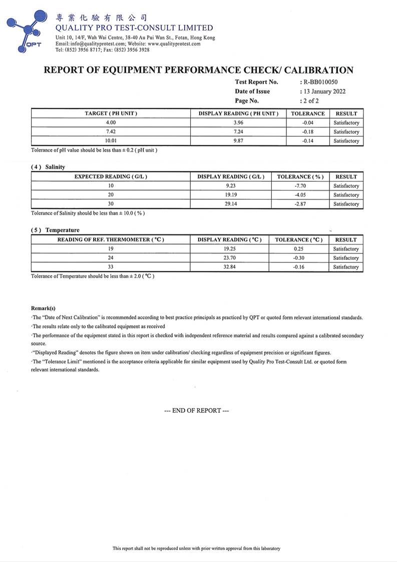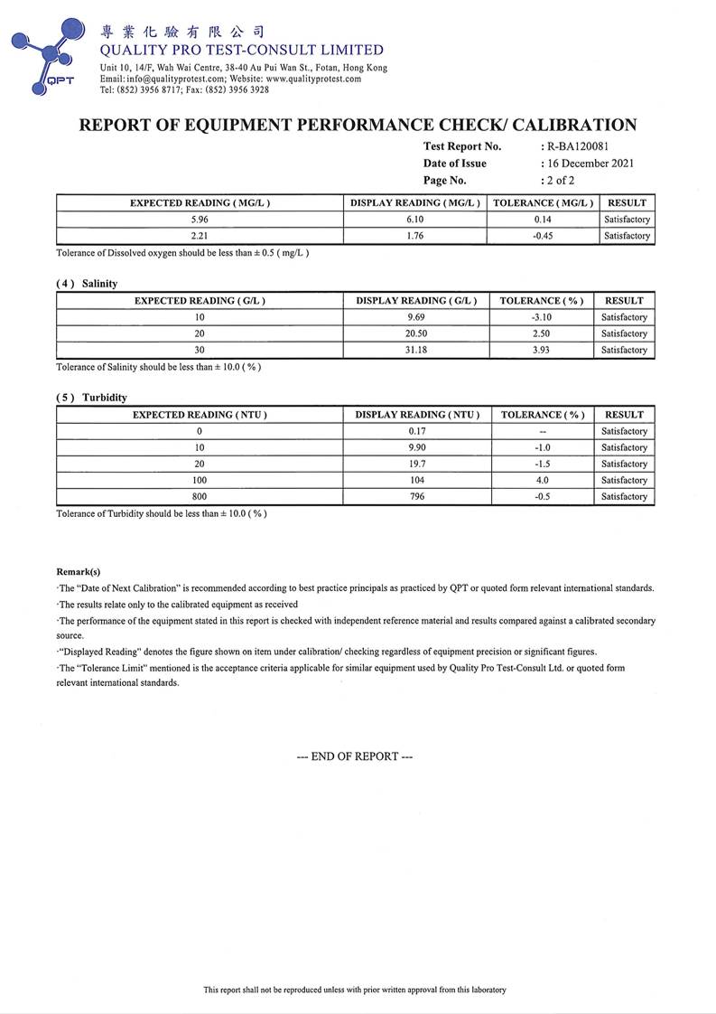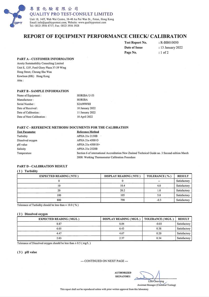Water Quality and Landfill Gas Equipment Calibration Certificate