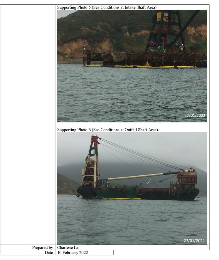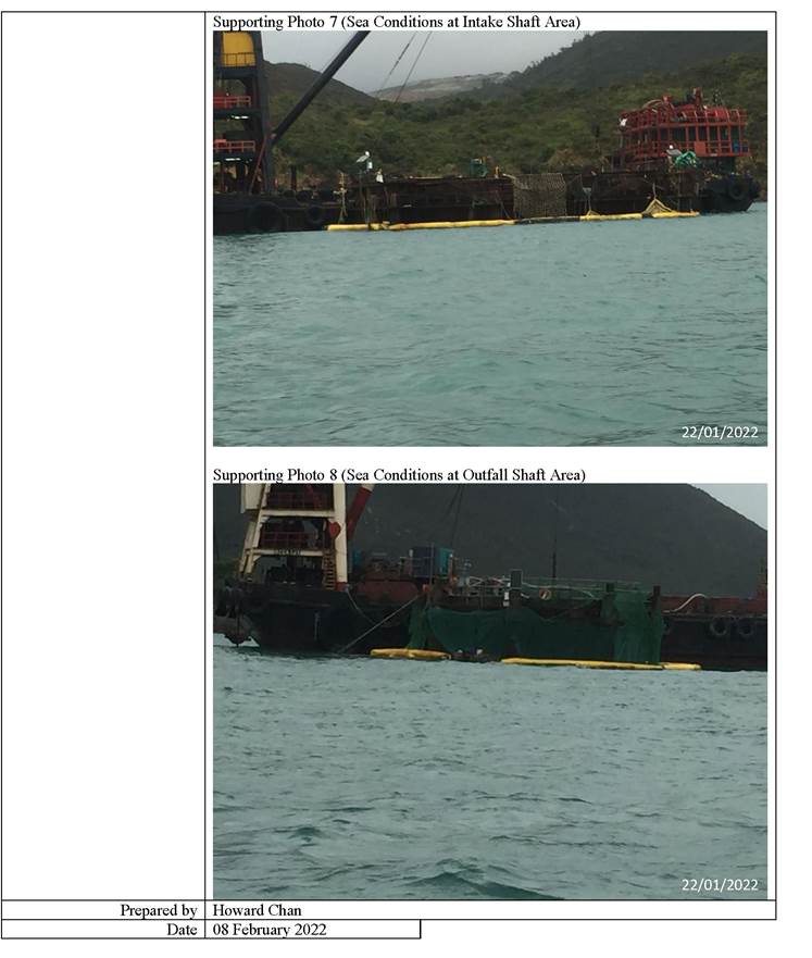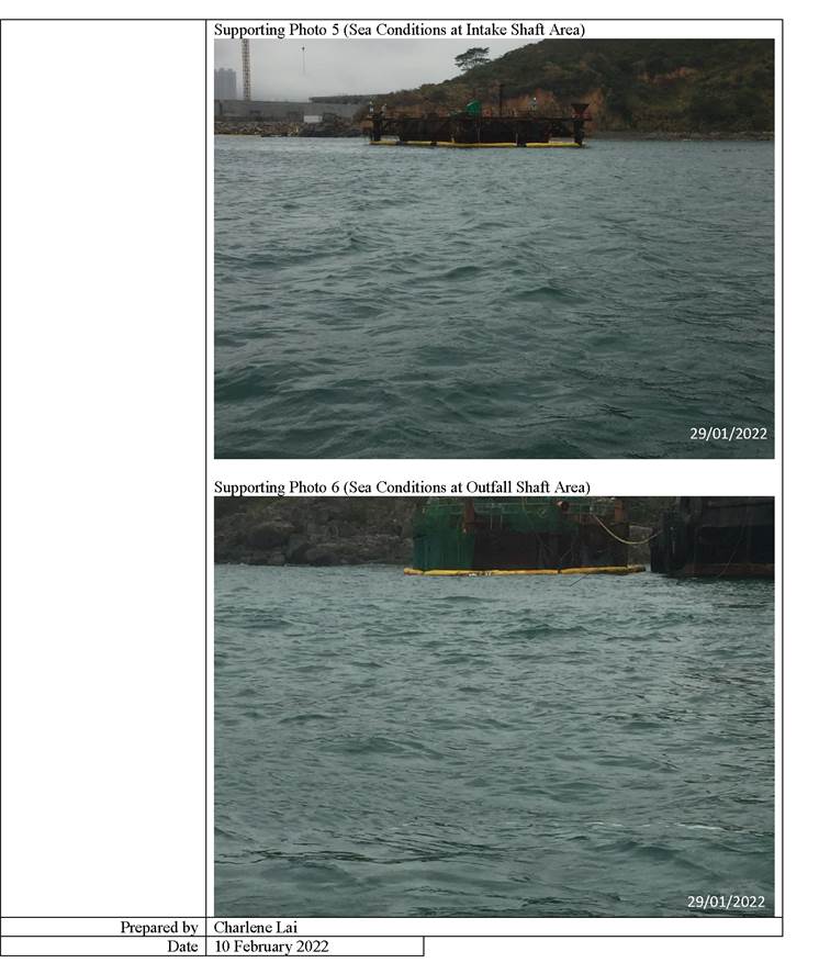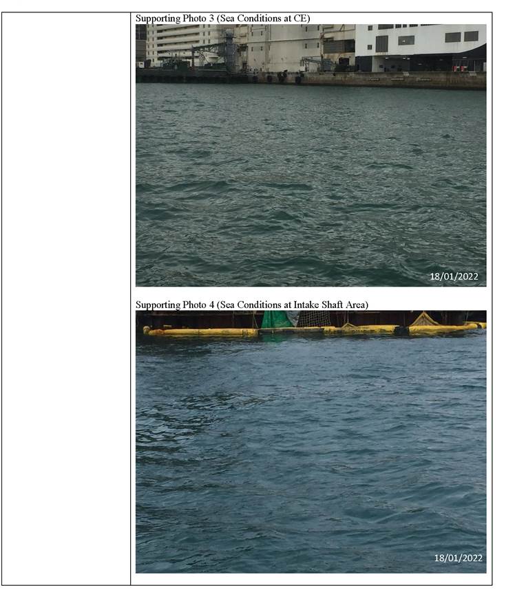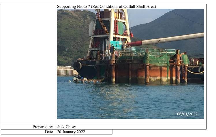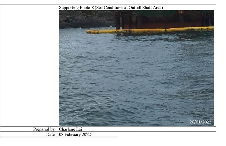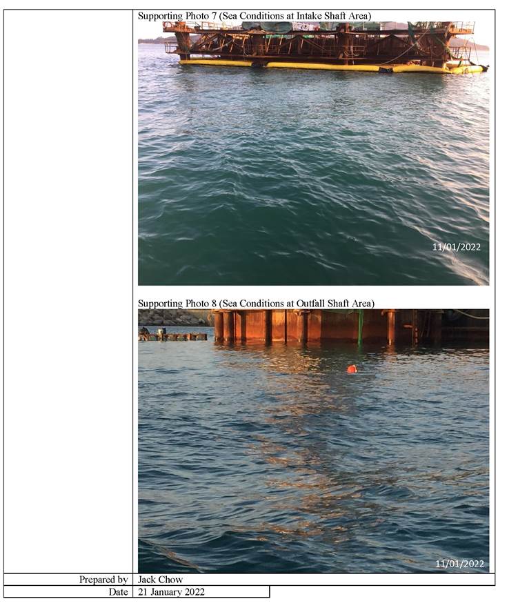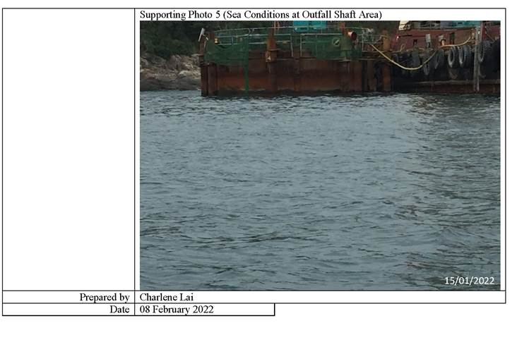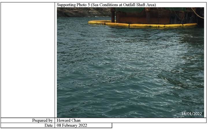 was observed on sea surface near to the Outfall Shaft Area. Further interview