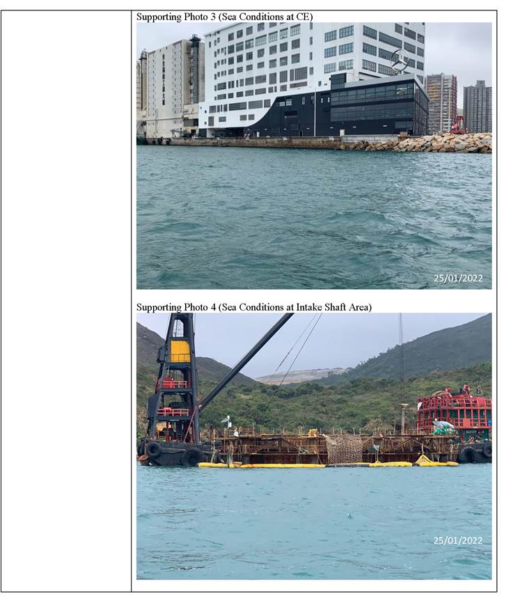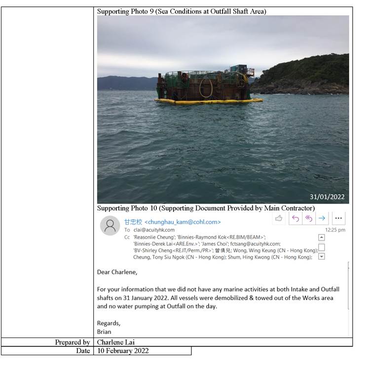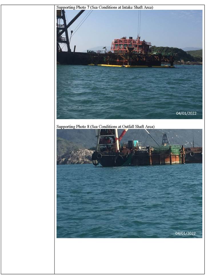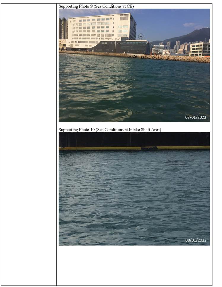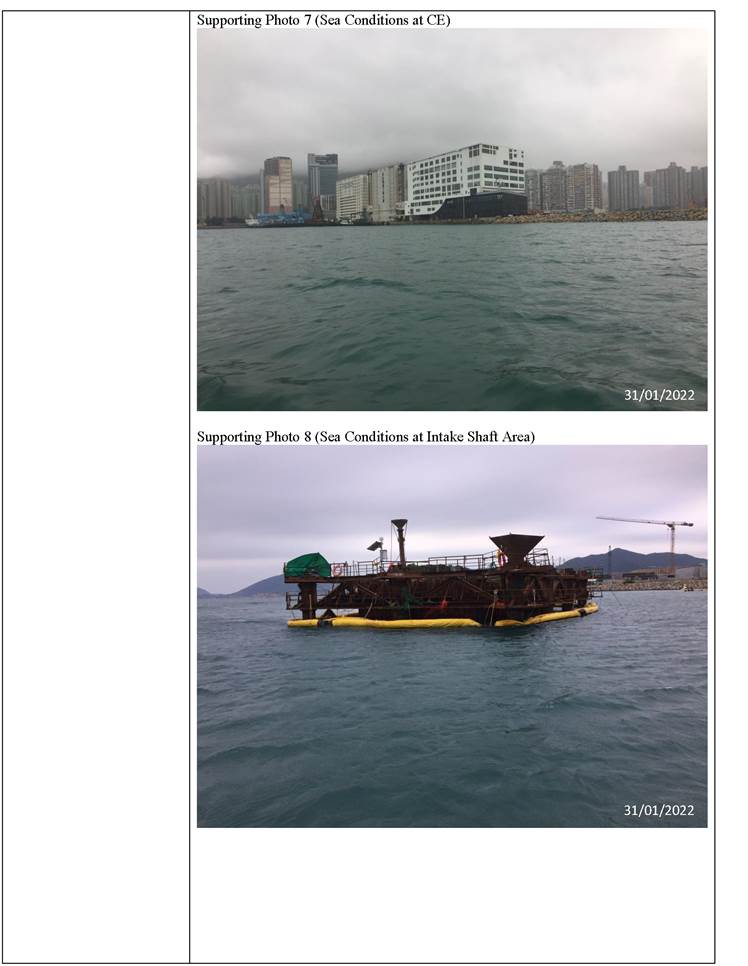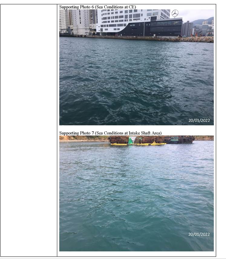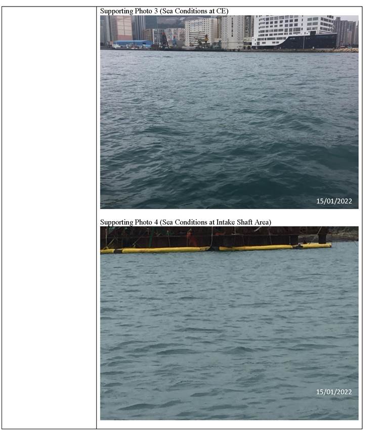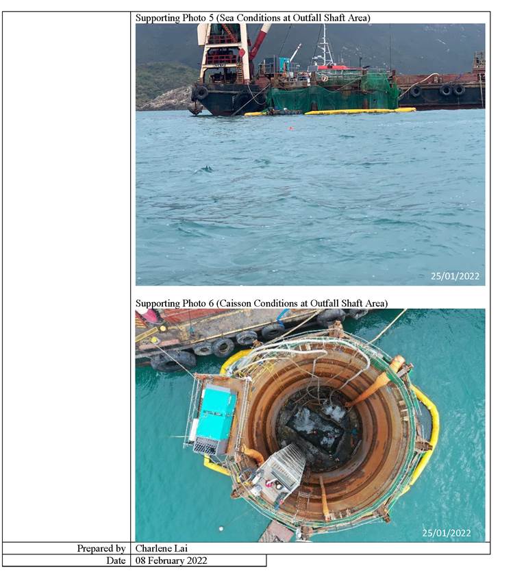 was observed on sea surface near to the Outfall Shaft Area. Further interview