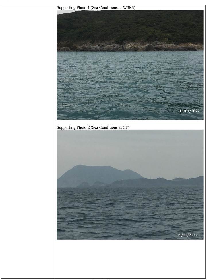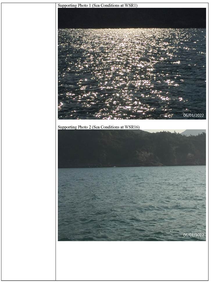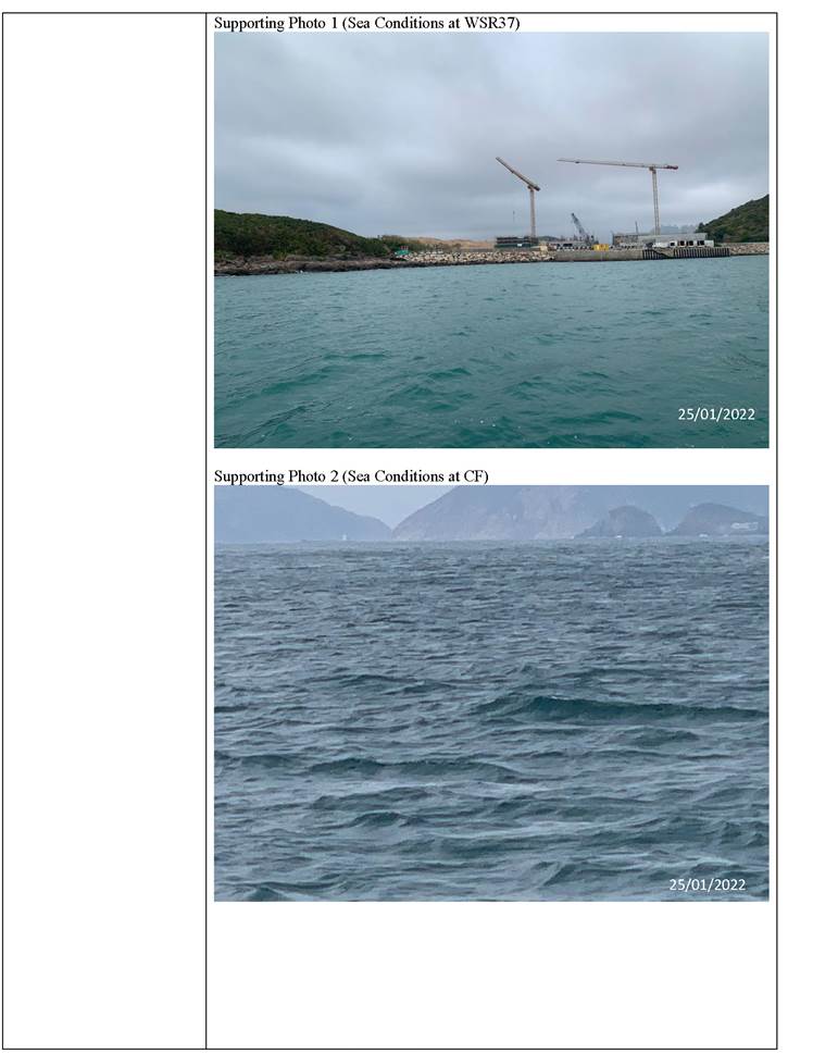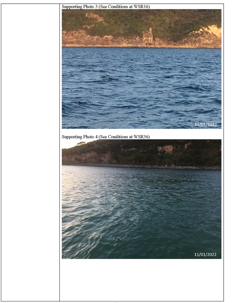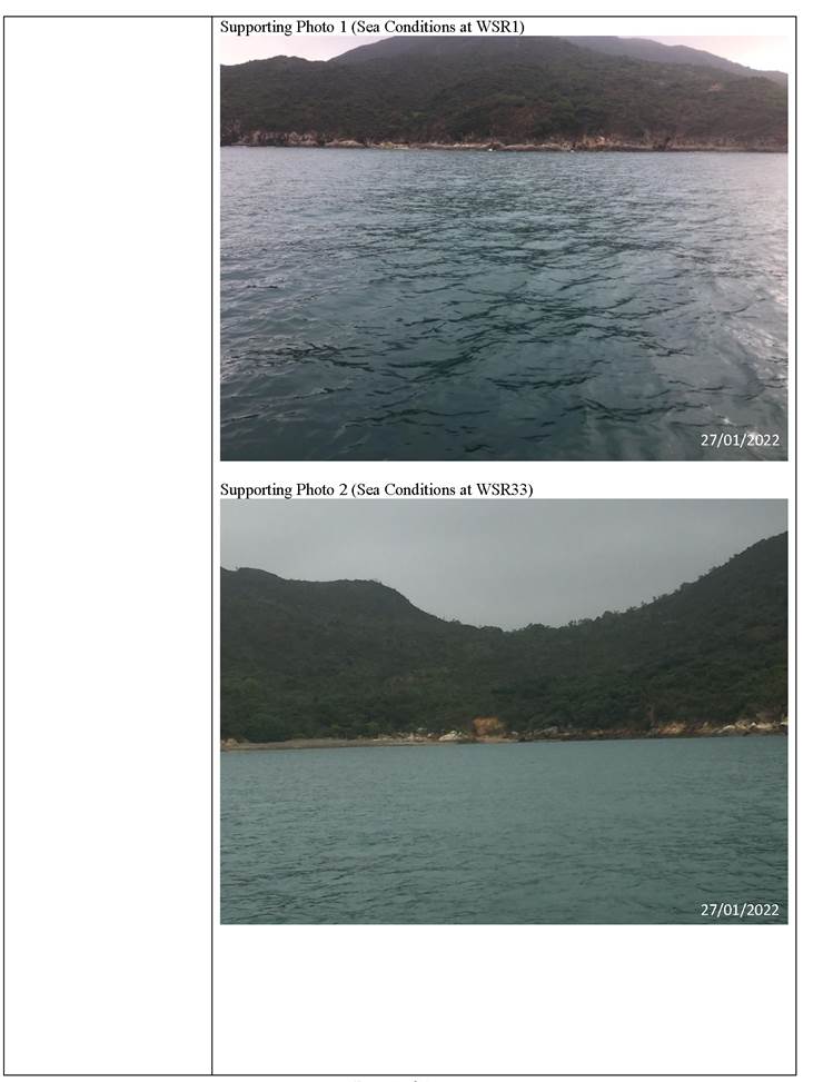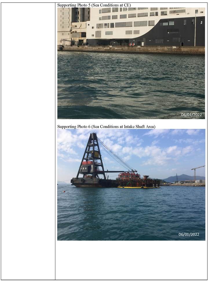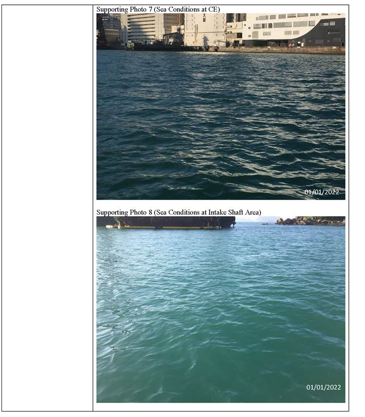 was observed on sea surface near to the Outfall Shaft Area. Further interview