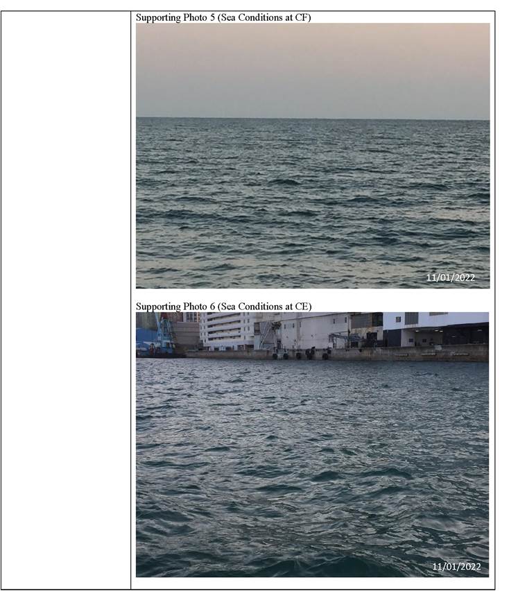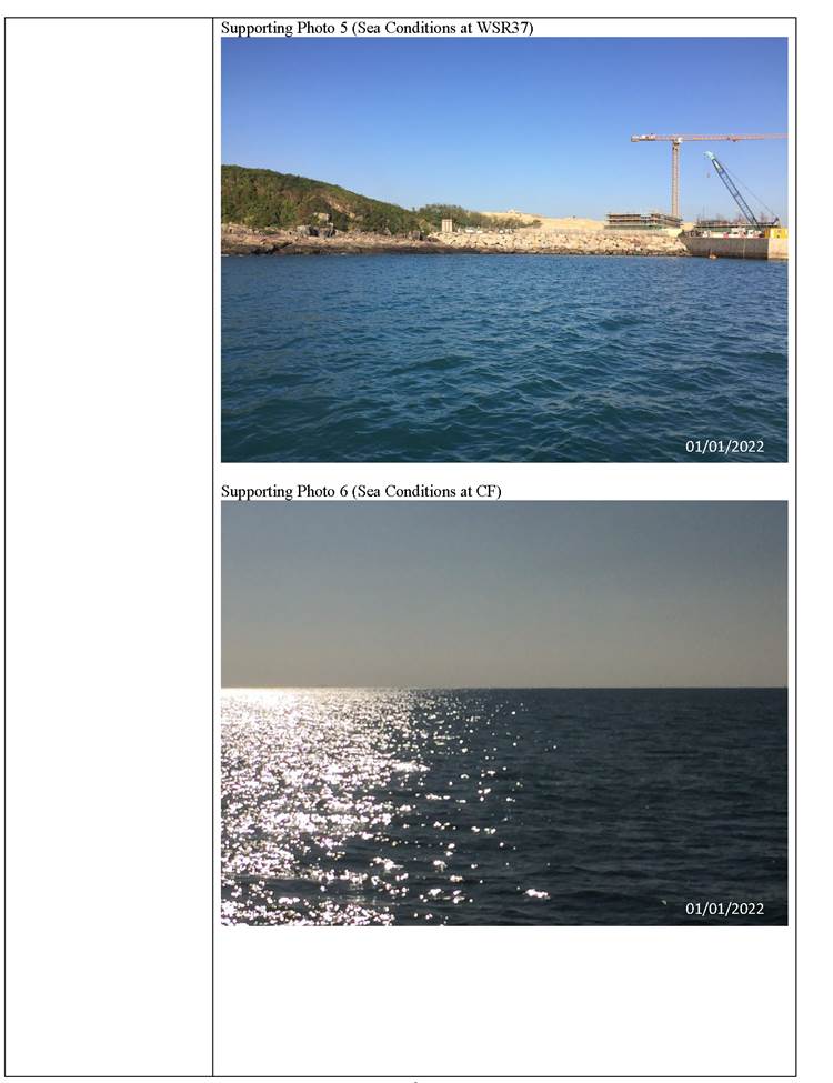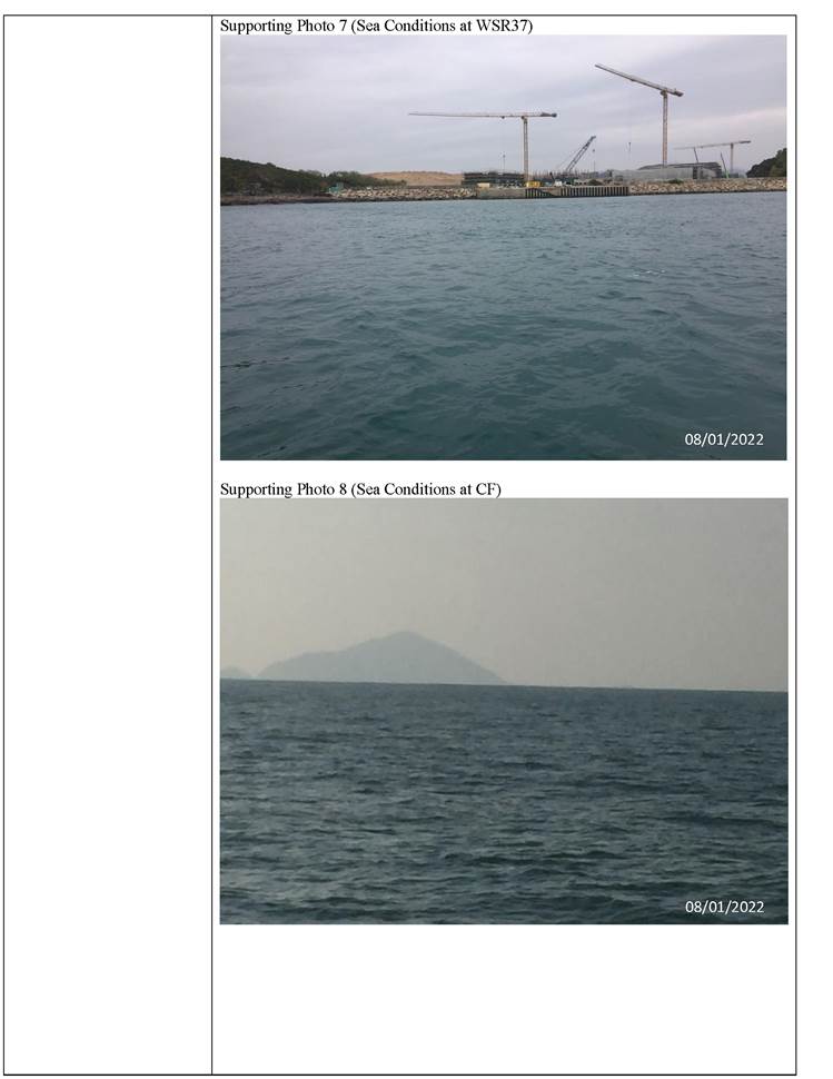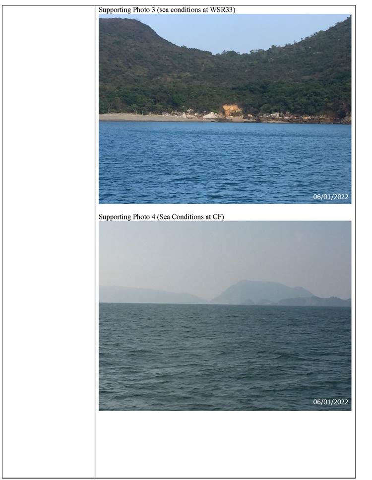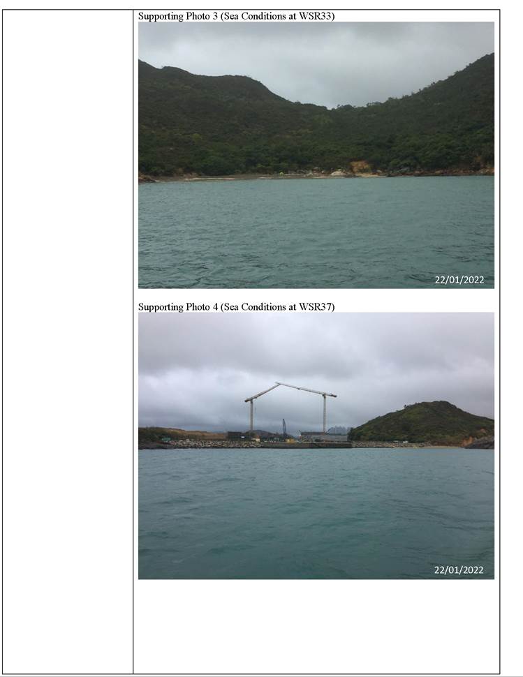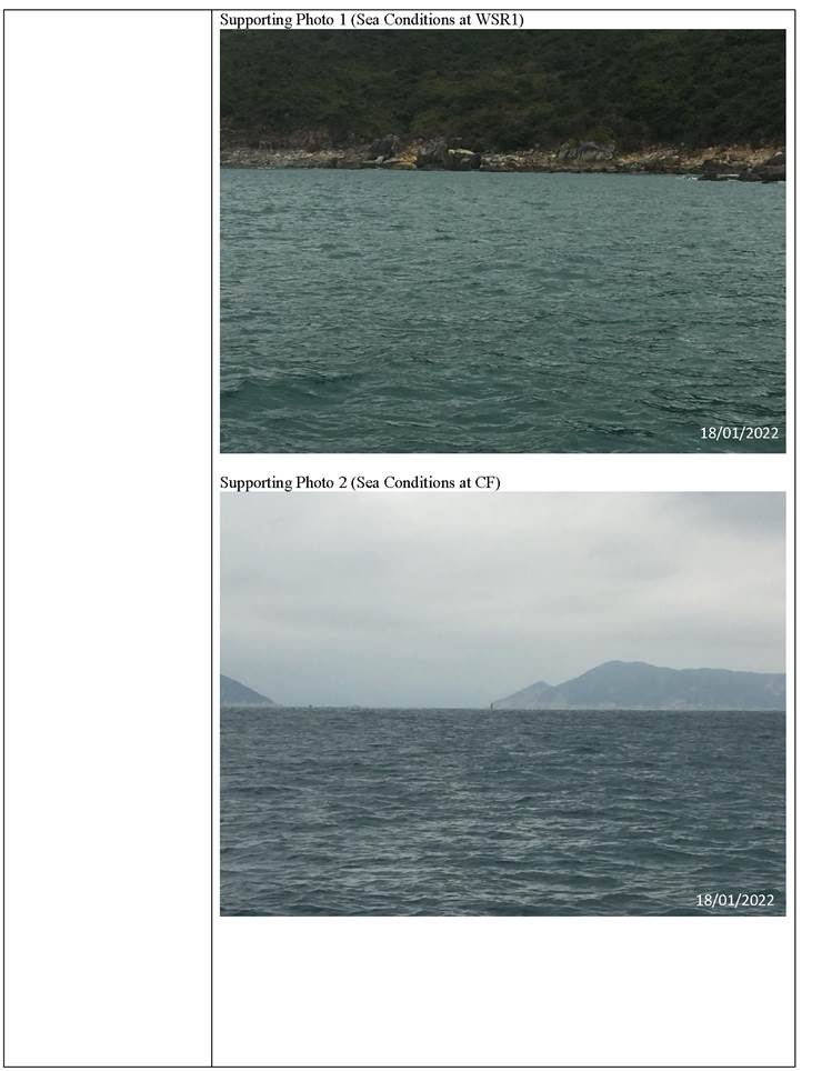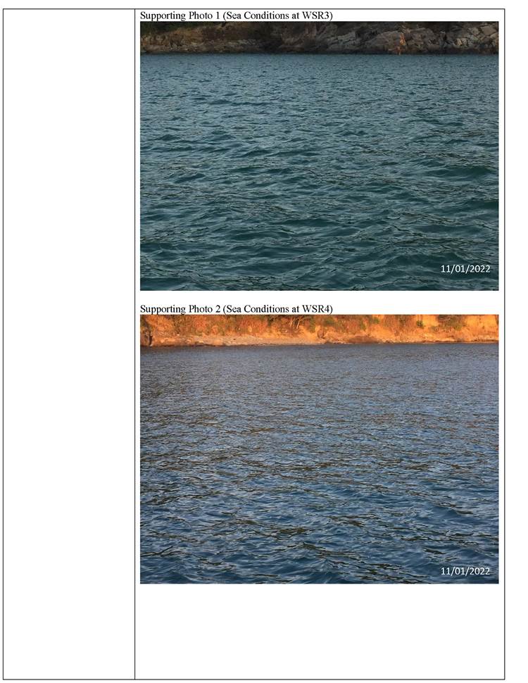 was observed on sea surface near to the Outfall Shaft Area. Further interview