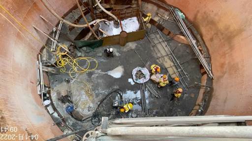 Dewatering, predrill, rock cutting and excavations at Outfall Shaft;