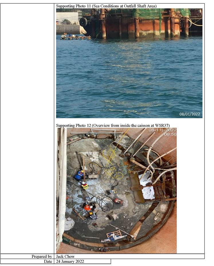 outfall shaft before 1330hrs when the incident was observed, the findings